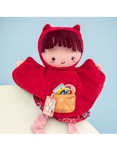 Como una niña bondadosa, Caperucita Roja quiere llevárselo todo a la abuelita. En su cesta lleva gofres, mermelada y fotos de sus amigos. Para no perderse, ha programado el GPS de su teléfono. Esta marioneta es ideal para contar el famoso cuento.