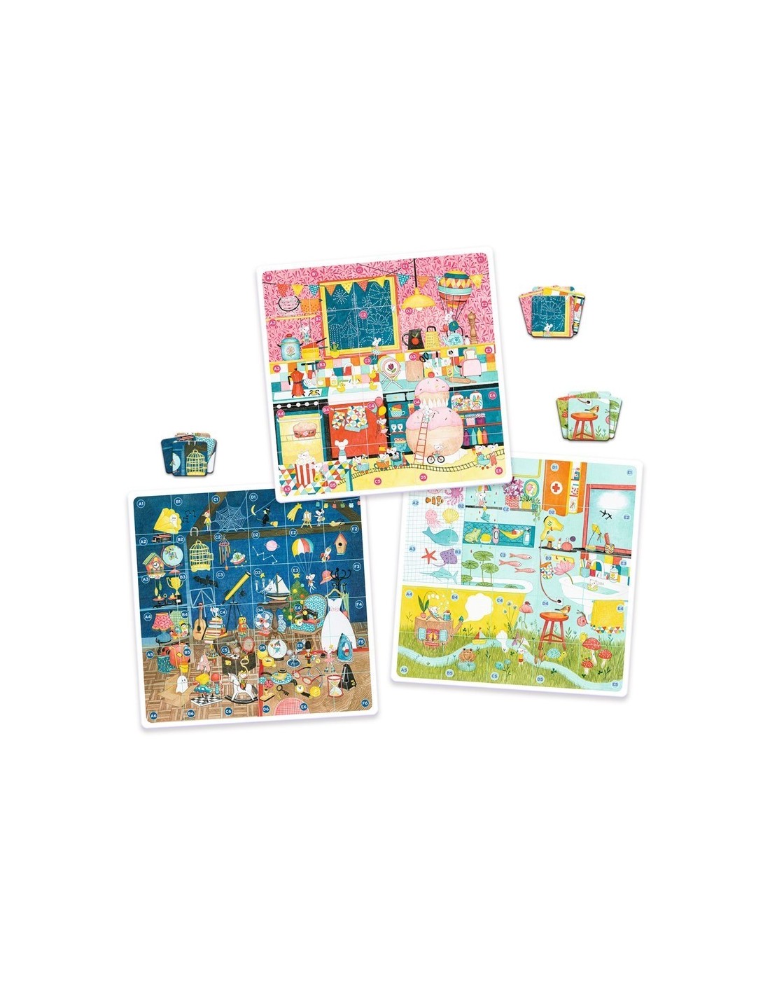 Si das descripciones precisas y escuchas atentamente, podrás encontrar las cartas que el director del juego describe en tu tablero. Un juego de lenguaje y observación… ¡en casa! 2 niveles de dificultad. Un juego que requiere concentración, atención y capacidad de observación. Objetivo del juego: Recoge el mayor número de cartas de tu tablero. Cuando no quedan cartas para describir, los jugadores cuentan el número de cartas en sus tableros. ¡El jugador con más cartas gana el juego! El juego incluye 3 juegos de 3 tableros de juego, 36 cartas pequeñas, 50 cartas grandes y 1 bolsa de tela.