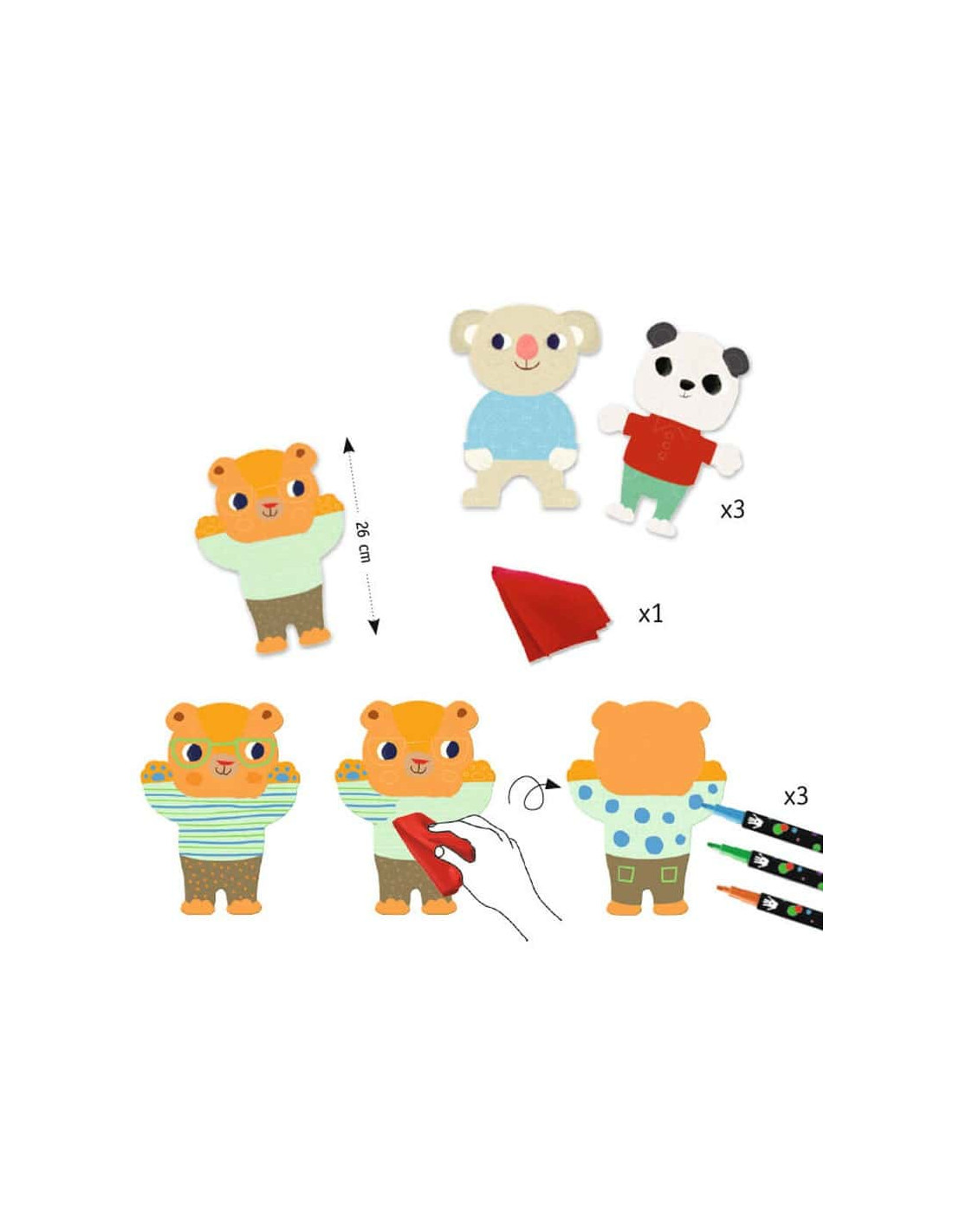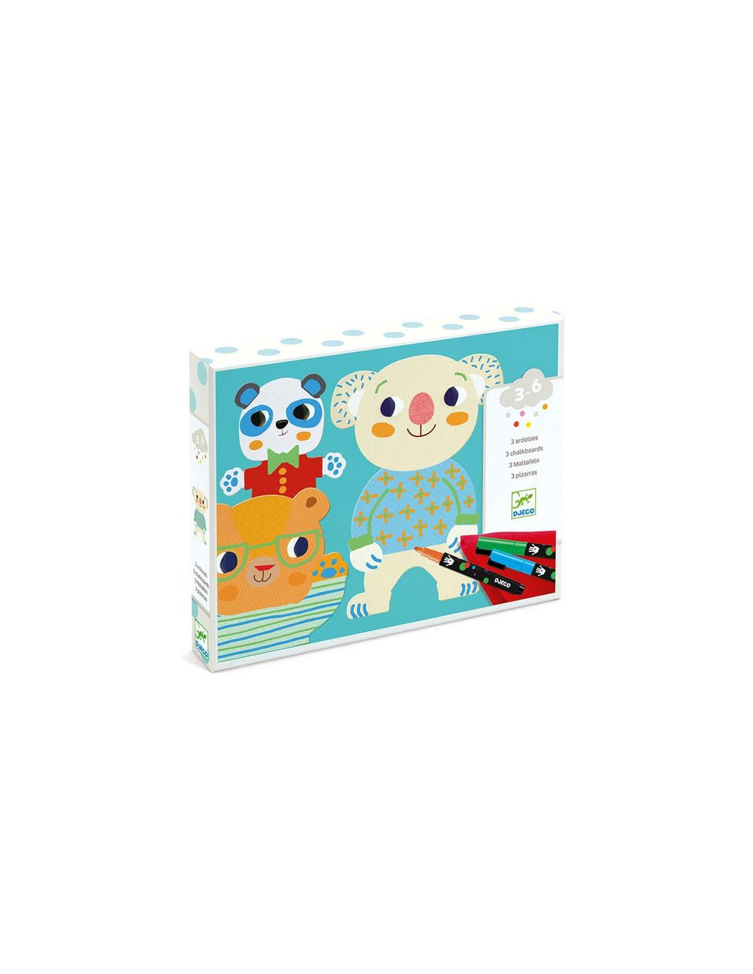 -Una caja para colorear que contiene 3 grandes pizarras de animales de doble cara para colorear con rotuladores de tiza líquida. Por un lado, el niño sigue las líneas de puntos, son gráficos. Por otro lado, dibuja lo que le gusta. Borra con el trapo y vuelve a empezar. -su priper contacto con el mundo del dibujo ,desarrolla la habilidad y la imaginación