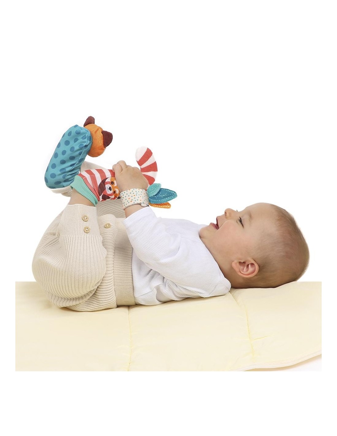 De divertidos diseños y colores vivos, estimularán la motricidad y el despertar del bebé gracias a sus actividades: múltiples texturas, papel arrugado, cascabel, chirriador y cintas.