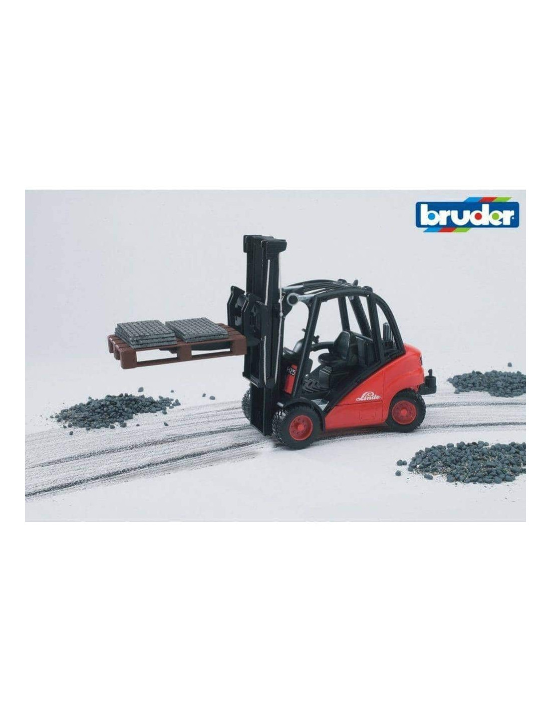 BRUDER - VEHICULO CARRETILLA LINDE GABELSTAPLER CON 2 PALETS 29X9X 22 CM