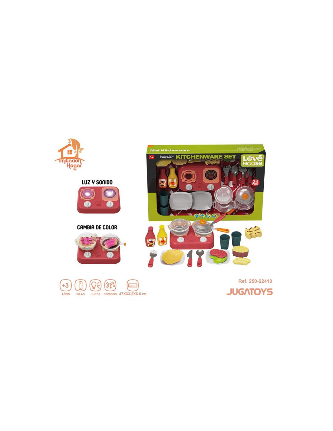 Set menaje con hornillo y accesorios, con luces y sonidos, los alimetos cambian de color 47x33.2x6.6cm