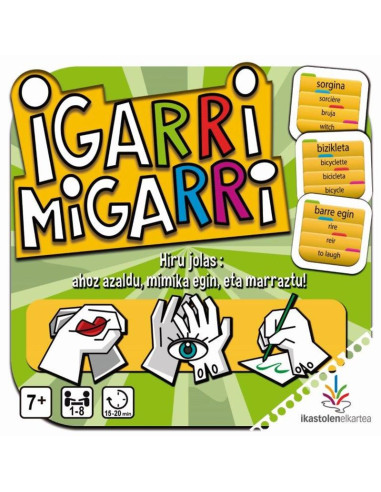 Horretarako, bota dadoa, eta botatzen duzun kolorearen arabera, dagokion hitza modu batera edo bestera adierazi behar diezu ikaskideei: ahoz (dadoko kolore horia asmatzen baduzu), mimikaz (kolore gorria asmatzen baduzu) edo marrazkiz (kolore morea asmatzen baduzu).