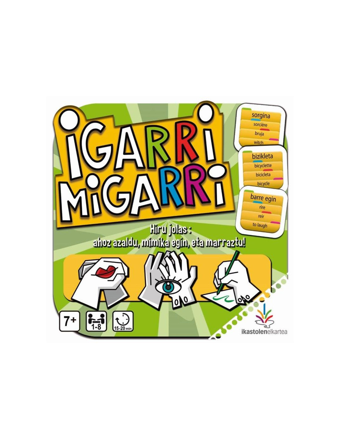 Atera objektuak kutxatik eta jarri denen aurrean, kartak ondo nahastuta eta aurpegia behera dutela. Osatu taldeak eta txandaka esan iezaiezu jokalariei txarteleko hitza, eta asmatu egin beharko dute.