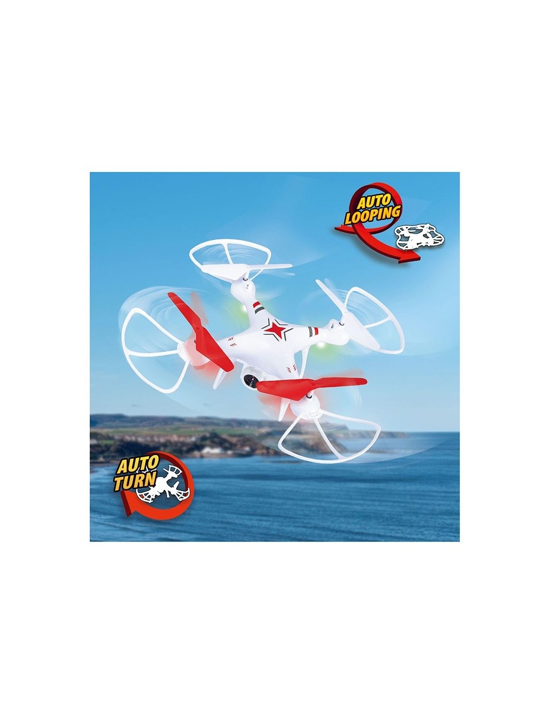 Equipado con un estabilizador giroscópico y tres velocidades diferentes, el FlyCam Drone garantiza un vuelo suave y controlado. Su función de retorno automático y auto looping añade un toque de emoción y seguridad, mientras que el mando sin orientación y auto giro facilitan el manejo para pilotos de todos los niveles. Además, es compatible con gafas de realidad virtual, lo que te permite vivir una experiencia inmersiva como nunca antes.