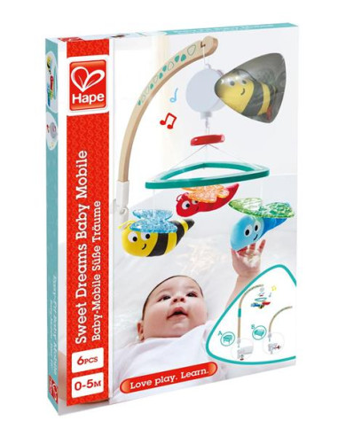 Convierte la hora del cambio de pañales y de irse a dormir en una experiencia divertida con este colgador giratorio musical. Los tres simpáticos bichos que cuelgan de él giran al ser empujados y sus alas están fabricadas con material translucido que brilla en la oscuridad, promoviendo la estimulación visual. Además, contiene una caja musical que emite una canción de cuna.