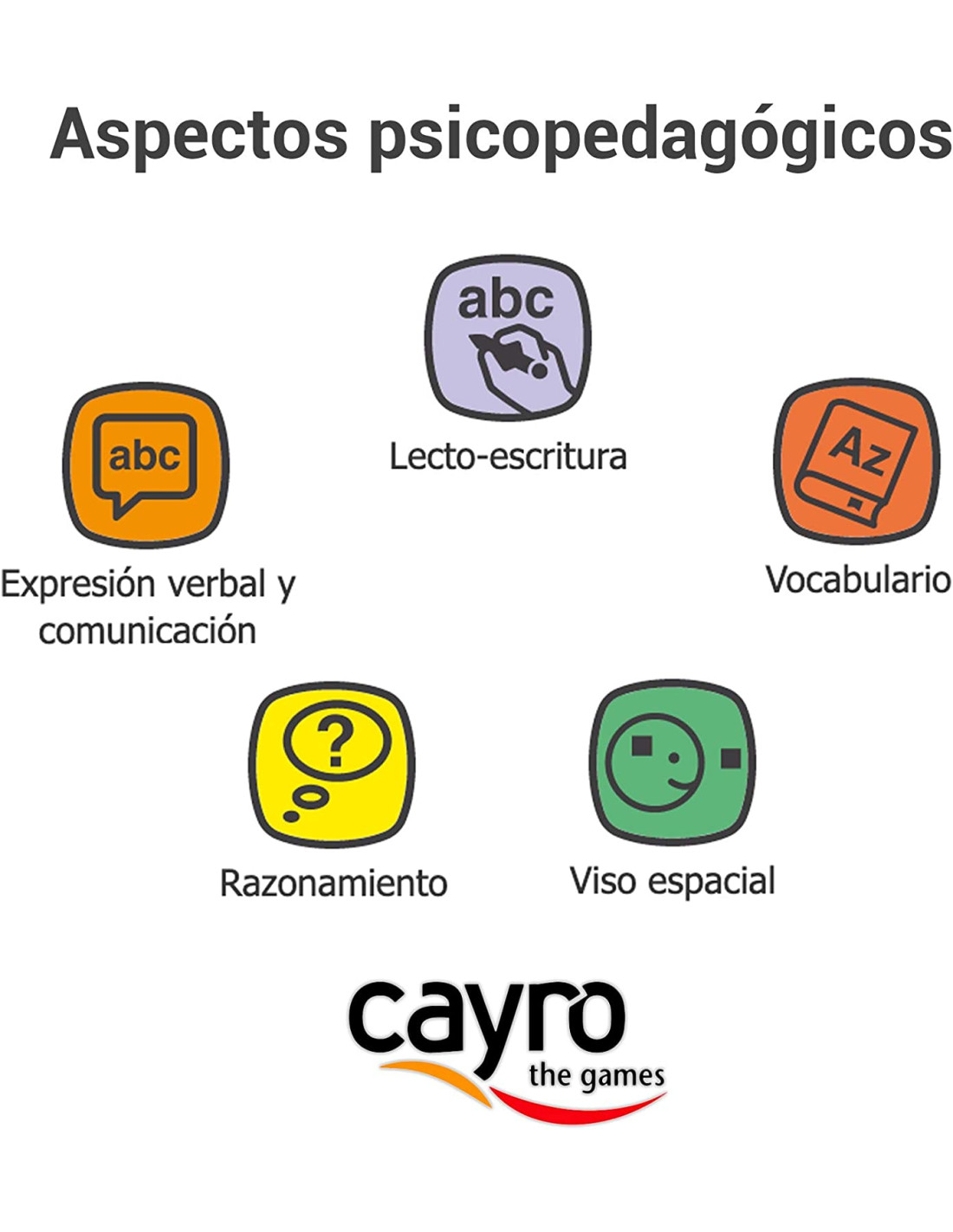 El juego de las palabras cruzadas en versión infantil. Los mas pequeños deben formar las palabras que tiene el tablero. Este juego está orientado a los niños que ya conocen las letras pero todavía no saben unirlas para formar las palabras. El juego dispone de tablero, fichas/letras y tarjetas, estas tarjetas sirven para la puntuación de cada uno. El que completa la palabra se la lleva. El juego incluye instrucciones con distintas versiones según el nivel de dificultad con el que se quiera jugar.