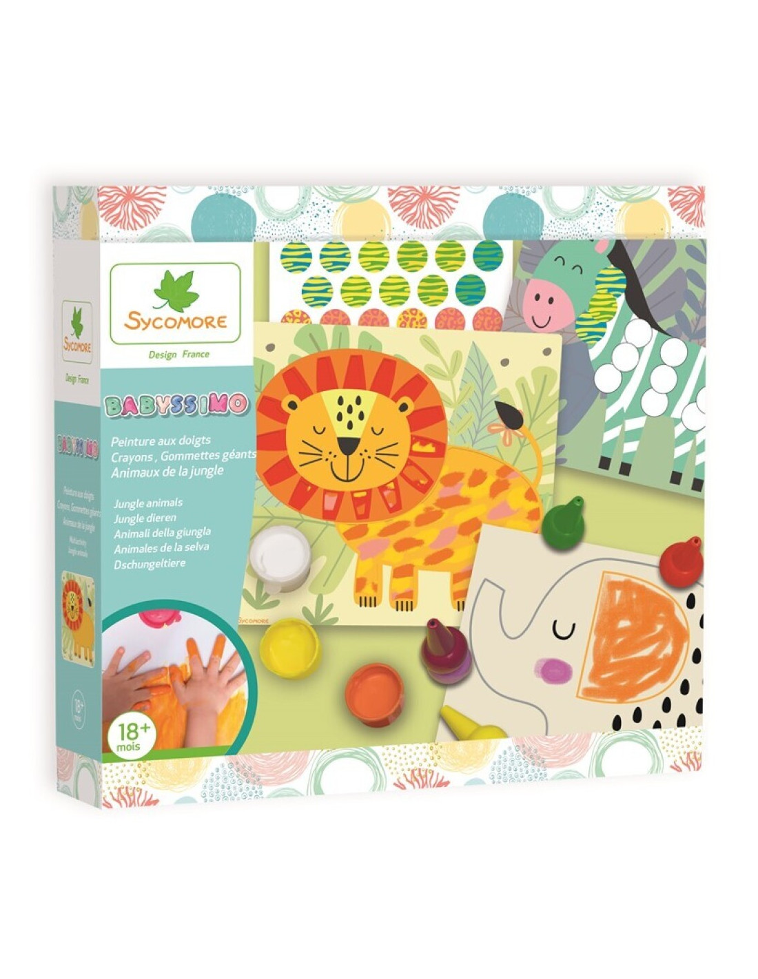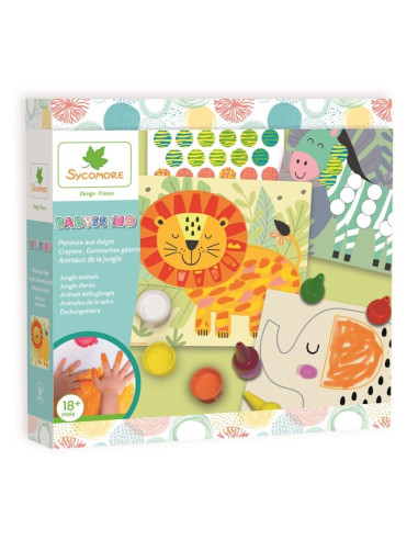 Descubre la caja multiactividades animales de la selva de la gama Babyssimo de Sycomore , una caja de ocio creativa para niños a partir de 18 meses con pintura de dedos, colorantes y pegatinas. Esta magnífica caja contiene varias actividades para niños a partir de 18 meses, una caja ideal para variar las actividades creativas.