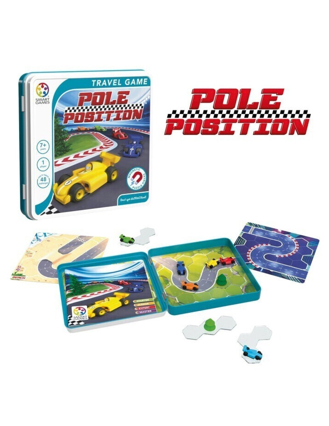 Pole Position es un juego de lógica de carreras de coches en formato viaje y con piezas imantadas.