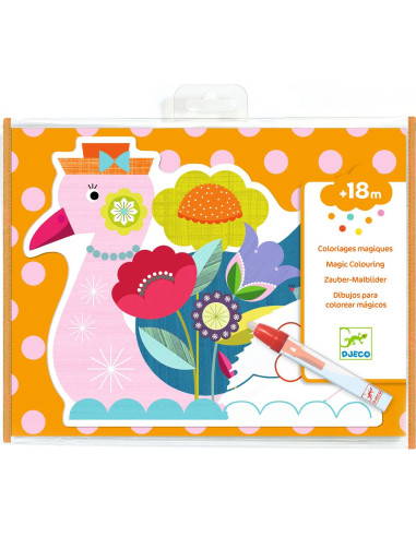 Una carpeta de coloreado al agua adaptada para los niños, a partir de los 18 meses. El niño colorea los animales con el rotulador al agua para descubrir lo que se esconde. ¡Pura magia!: ¡los motivos aparecen y cambian de color! ¡Cuando las láminas se secan, el niño vuelve a empezar! -Una primera actividad de coloreado, a partir de los 18 meses. -¡Efecto mágico! -Un rotulador grande, adecuado para los niños. -1 bandeja rígida para apoyar las 4 láminas. -Láminas de plástico para volver a empezar tantas veces como uno quiera. -Práctica carpeta para guardar, fácil de transportar. -Las hojas para colorear tienen forma de animales. Contenido: 4 láminas ilustradas y siluetadas de plástico blando con una zona blanca que desaparece, un rotulador al agua y 1 soporte de cartón grueso.