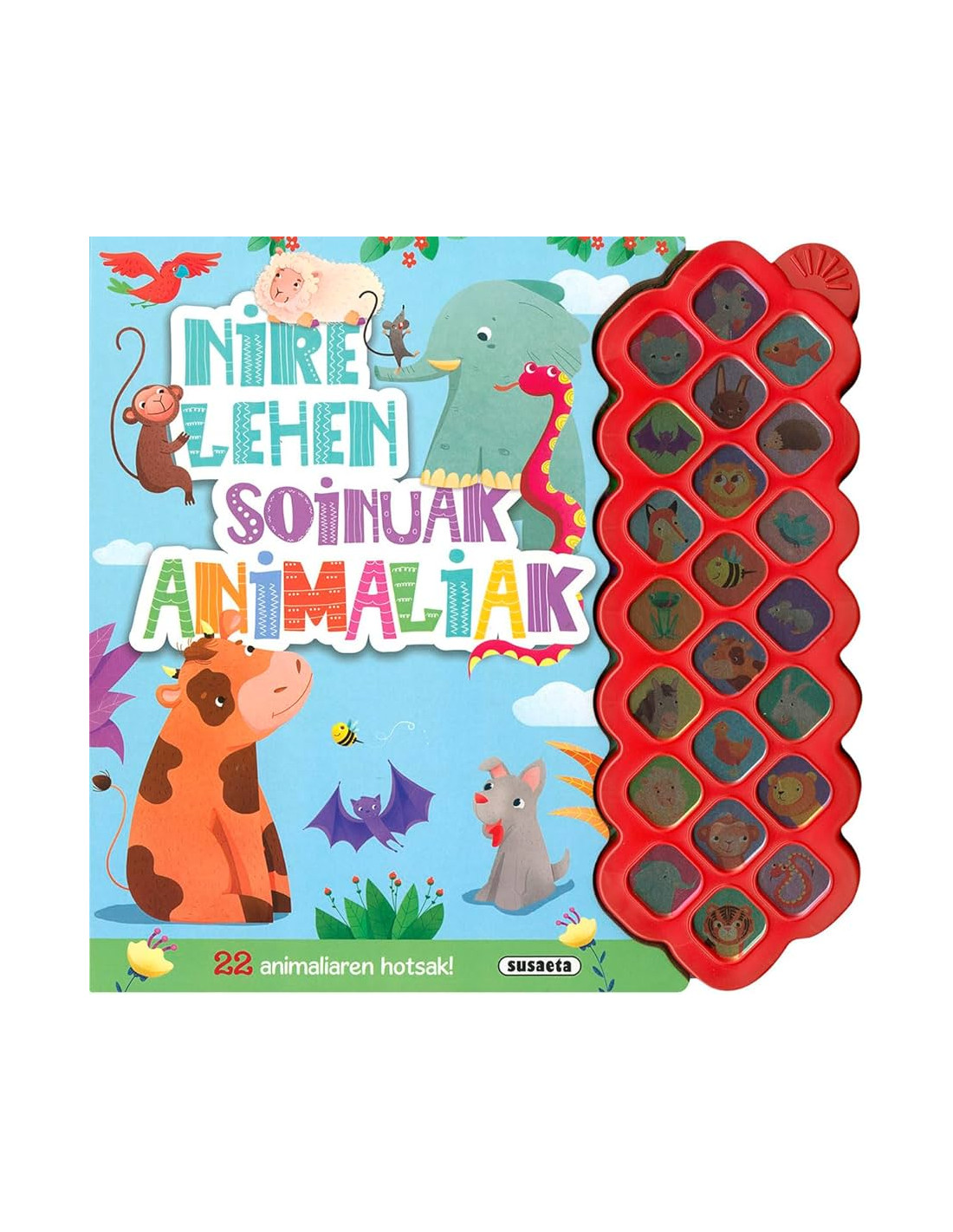 Liburu dibertigarri honekin haurrek 22 animalia soinu baino gutxiago entzun ditzakete. Irudi soinu modulu distiratsu eta distiratsuarekin, objektu gisa liburuarekiko interesa piztuko du, animaliekin ezagutzen lagunduko die eta objektu desberdinak bilatu, zenbatu eta aurkitzen lagunduko die. Formatu handiko taula liburua txikien garuna eta algara suspertzeko aproposa.
