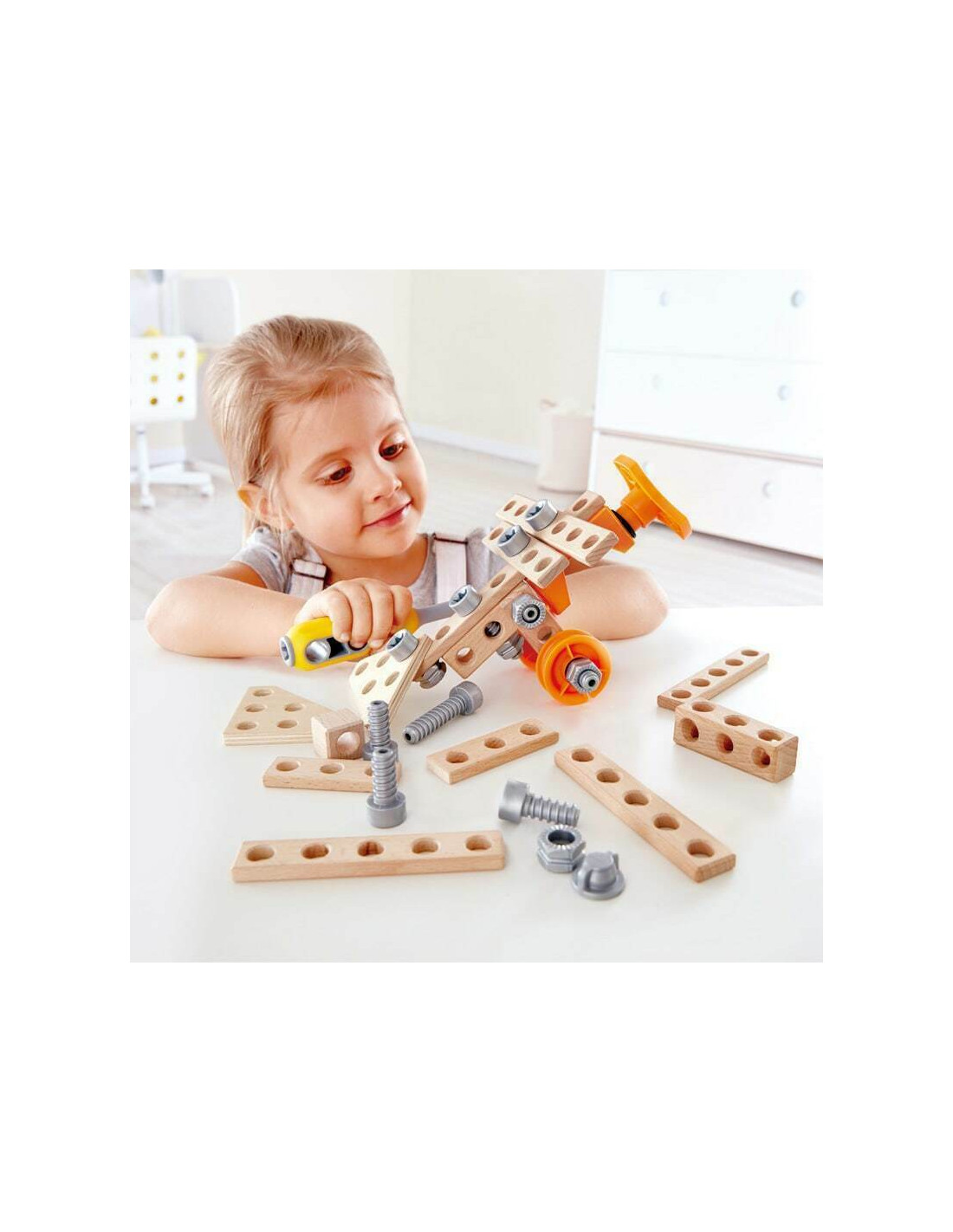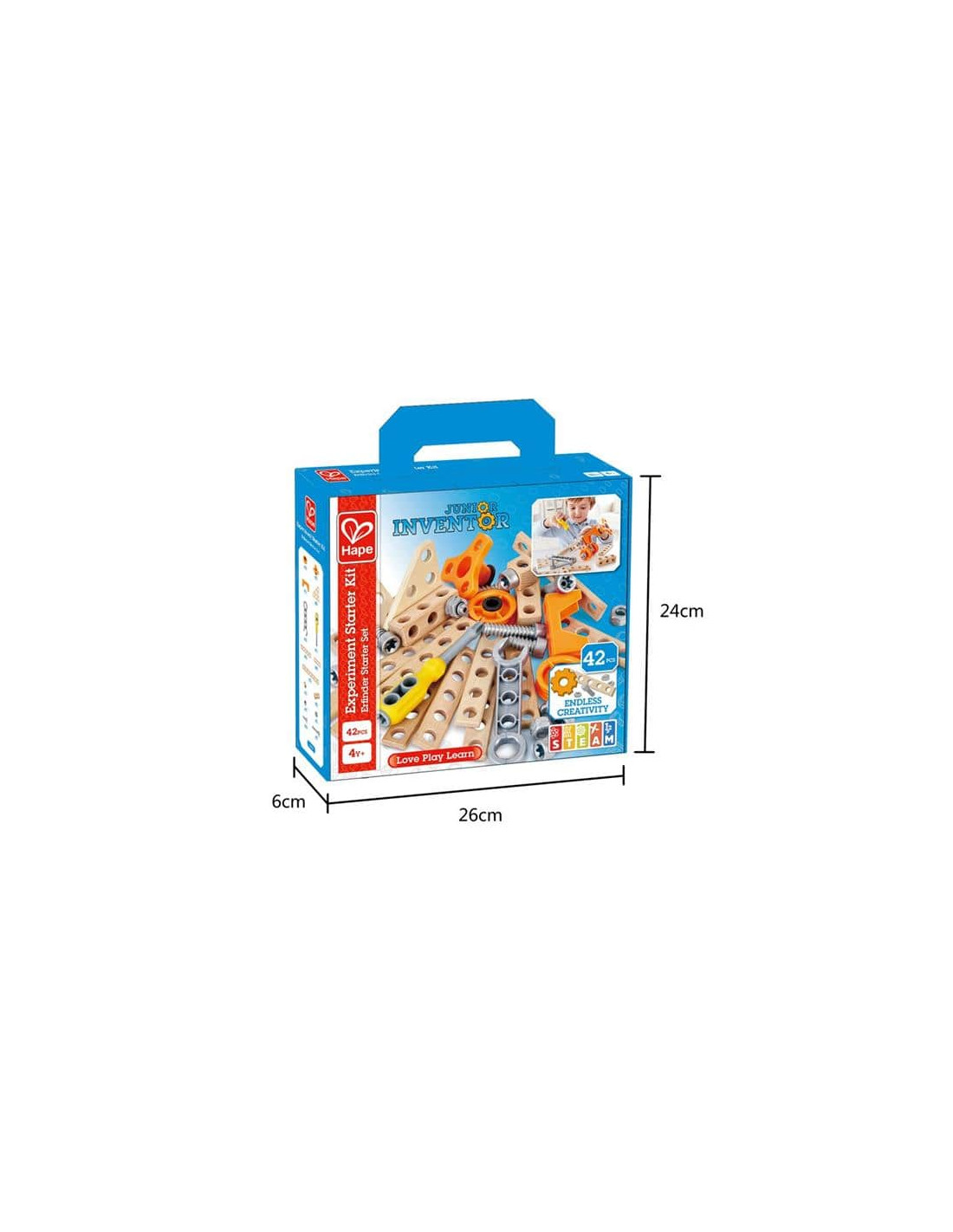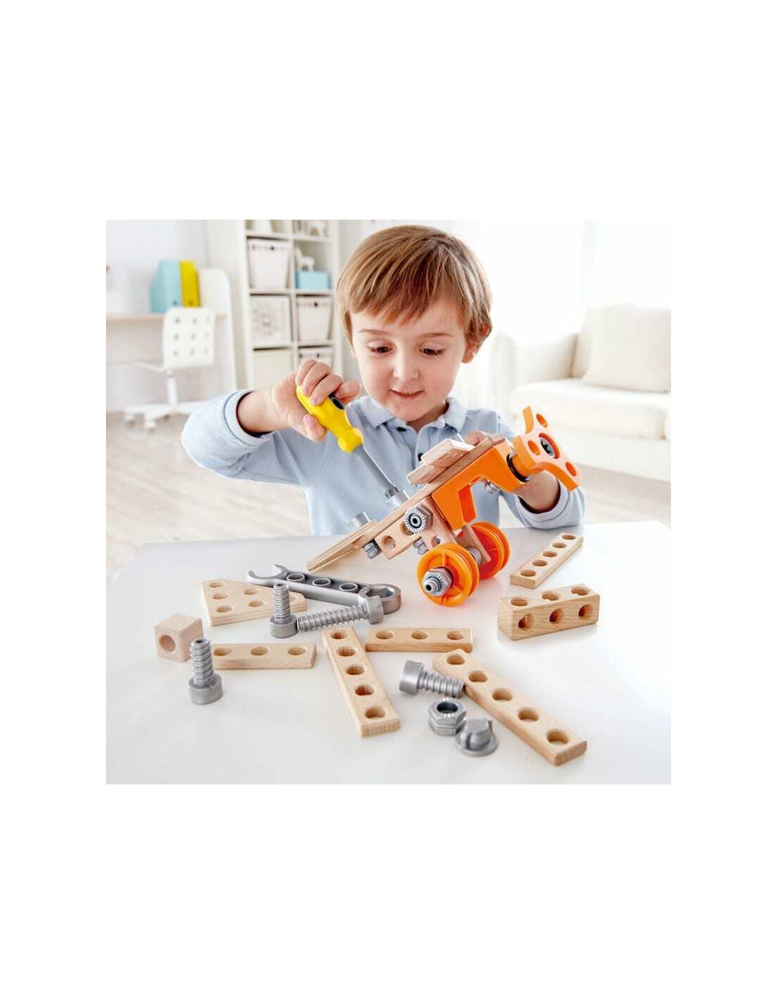 Conjunto de construcción libre de edificios con piezas y herramientas para jóvenes inventores. Compatible con otros conjuntos de Junior Inventor para que pueda agregar a sus proyectos existentes. La tarjeta de inspiración le brinda ideas para construir un balancín, una bicicleta de equilibrio, un molinete de viento, un avión de apoyo y un zorro sentado. Piezas y herramientas fáciles de usar.