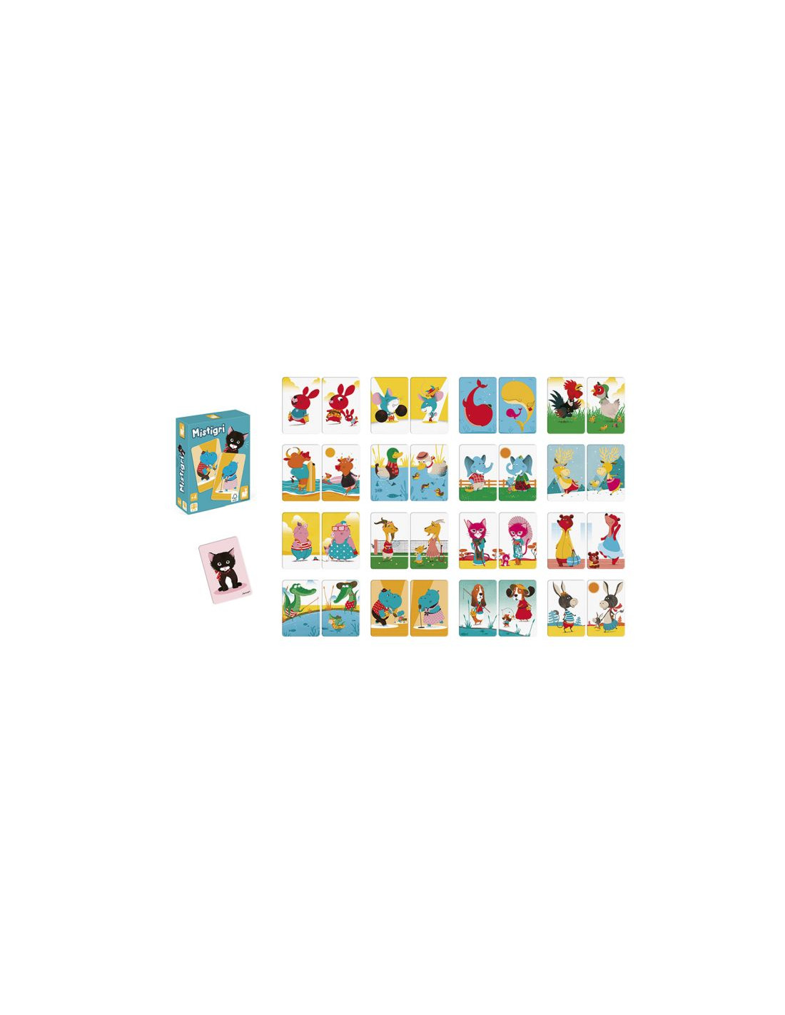 De 2 a 6 jugadores. 33 cartas (7 x 10,5 cm) El objetivo del juego es hacer parejas reuniendo a las familias (papá + mamá + bebé) pero sin quedarse con el gatito negro = el mistigri... porque el que tenga la carta del mistigri al final de la partida habrá perdido.