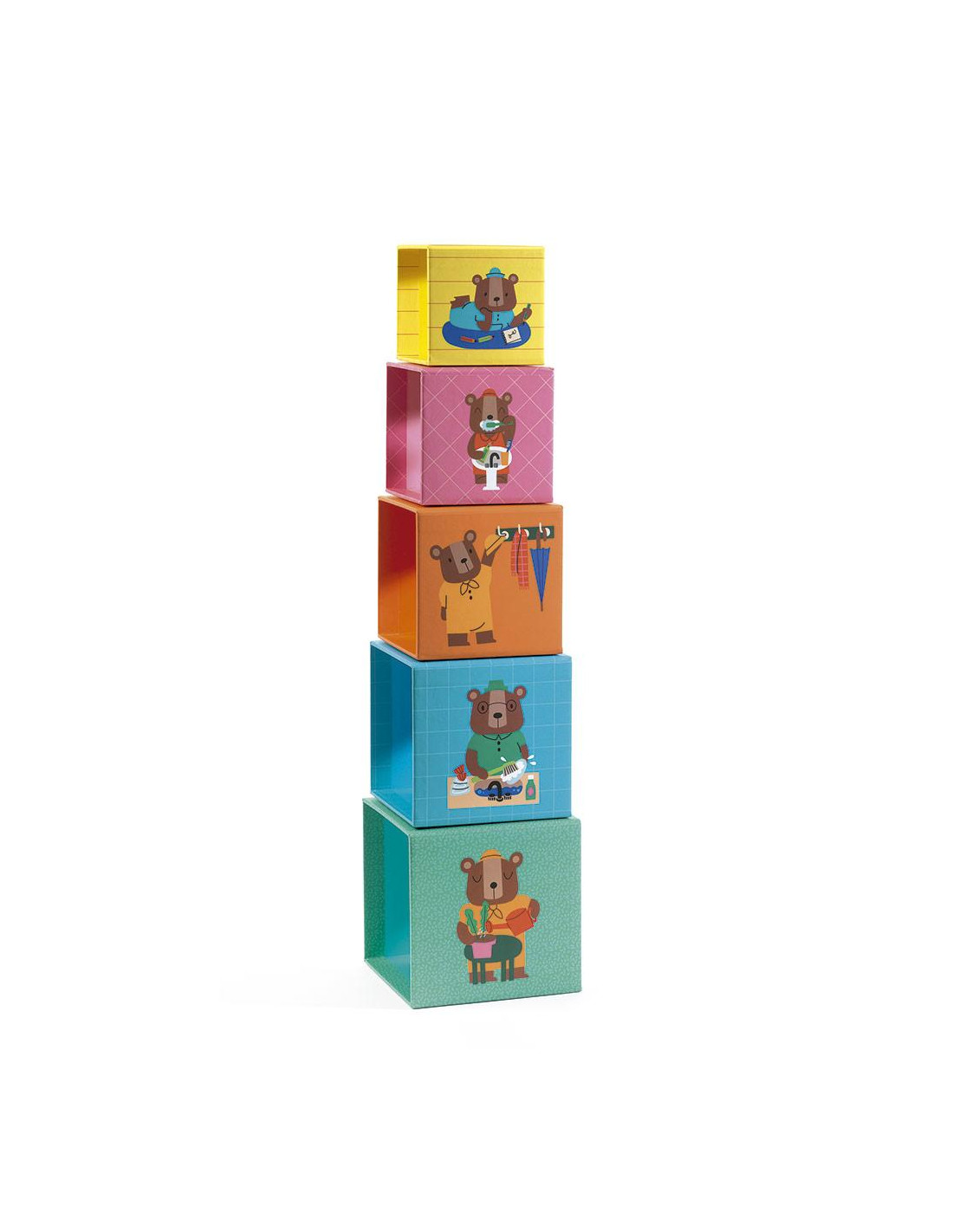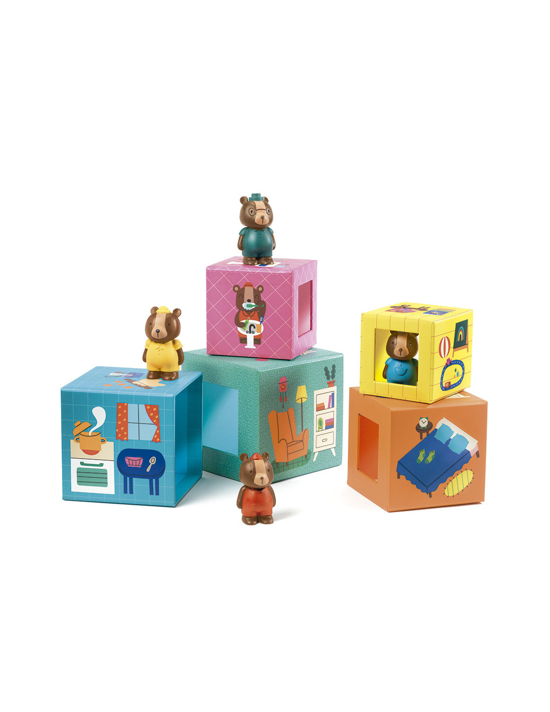 Estos cubos apilables están ilustrados con las diferentes estancias de una casa, con los números del 1 al 5 acompañados de objetos que representan a cada cantidad, o con las imágenes de los divertidos ositos realizando actividades cotidianas entre otras, ¡es perfecto para que los más pequeños descubran el entorno que los rodea!