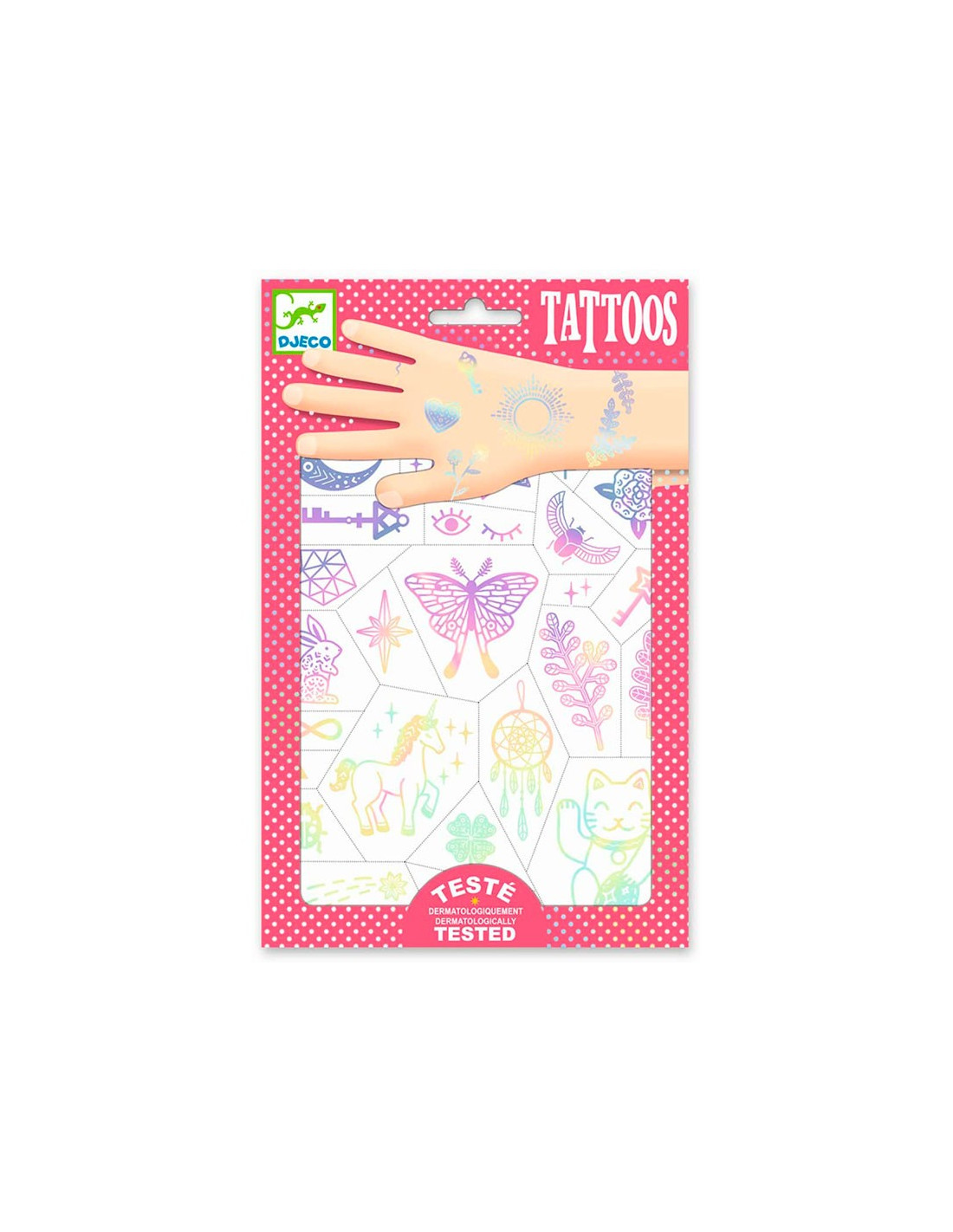 -Dos hojas de calcomanías que representan símbolos de la suerte. ¡Para el deleite de los niños, están completamente cubiertas con un material brillante e iridiscente! Estas calcomanías fáciles de usar están precortados y se aplican con un poco de agua. Dermatológicamente probado. -Calcomanías dermatológicamente probadas. -Calcomanías decoradas con zonas iridiscentes. -Las hojas están precortadas para desprender fácilmente la calcomanía.