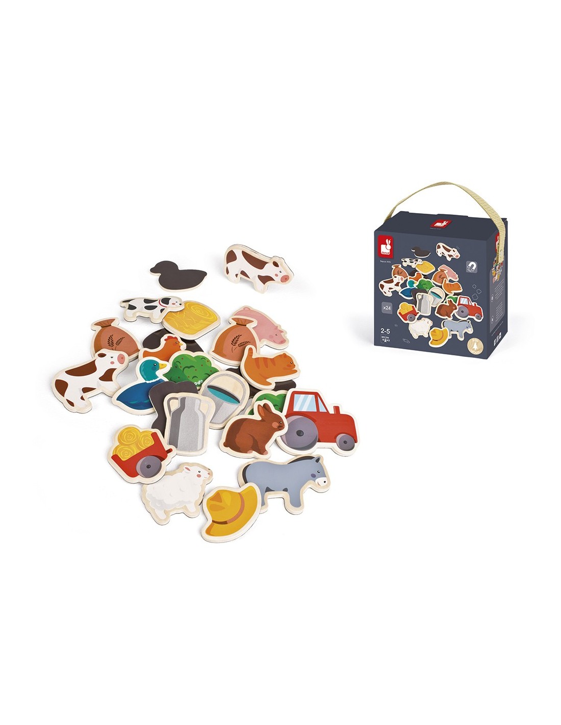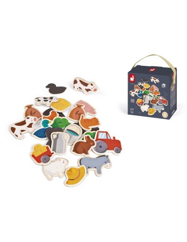 Juguete de madera, para niños de 2 a 5 años. Imanes de madera para pizarras (o para cualquier otra superficie magnética) con motivos de granja. Ideal para descubrir el universo de la granja de forma divertida.