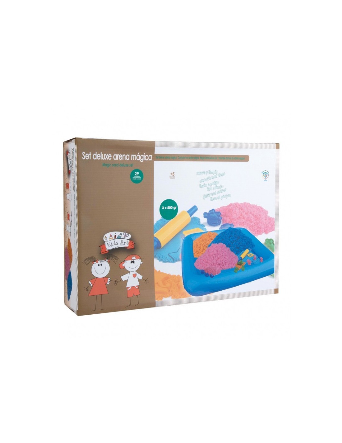 Set XL de arena mágica con todo lo necesario para poder moldear y construir lo que quieras. Se trata de una arena mágica de calidad premium. No mancha, es fácil de moldear y de limpiar, es ligera, suave y agradable. Perfecta para fomentar la motricidad fina, así como la imaginación y la creatividad. El set incluye: 1 bandeja de plástico para no manchar. 3 * 500 g de arcilla arenosa y 28 moldes de arena. 1 * rodillo 1 * manual de instrucciones