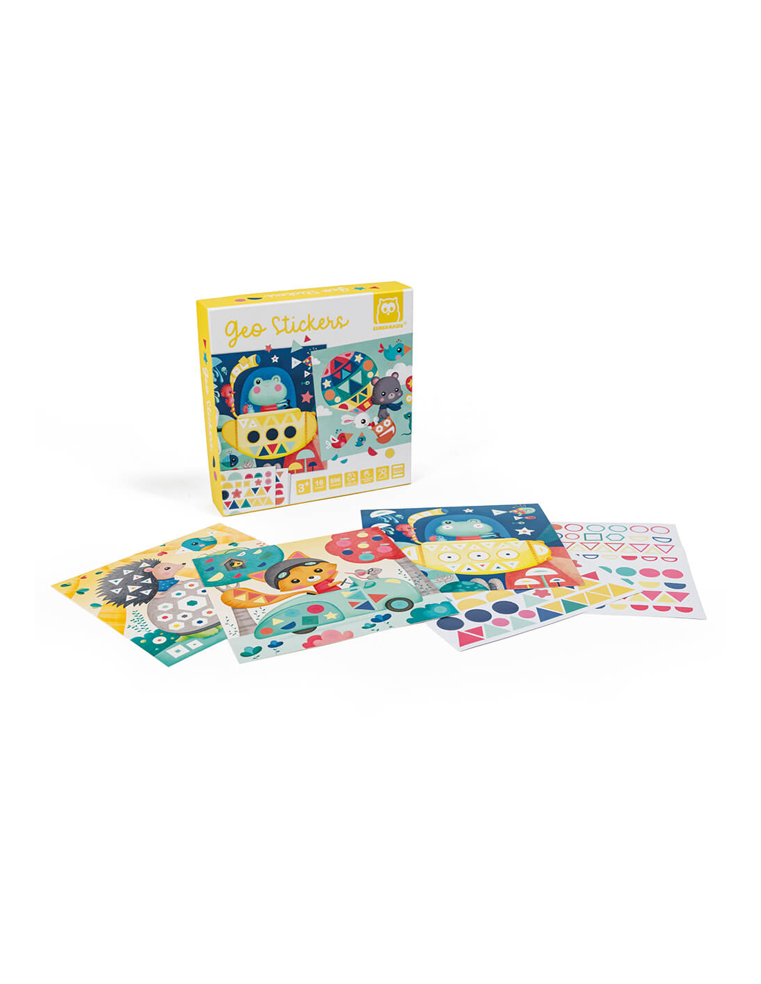 Este juego creativo para decorar con pegatinas contiene 14 láminas con escenas protagonizadas por simpáticos animales que los más pequeños deberán completar colocando la pegatina adecuada. La mecánica del juego es muy sencilla: cada lámina incluye formas geométricas con un borde de color que los niños deberán asociar con la pegatina adecuada. Una vez realizada la asociación y elegida la pegatina, deberán hacer uso de sus habilidades motrices para colocarla correctamente. Características: Juego creativo con 14 láminas que representan distintas escenas. Incluye más de 540 pegatinas geométricas de distintos colores.