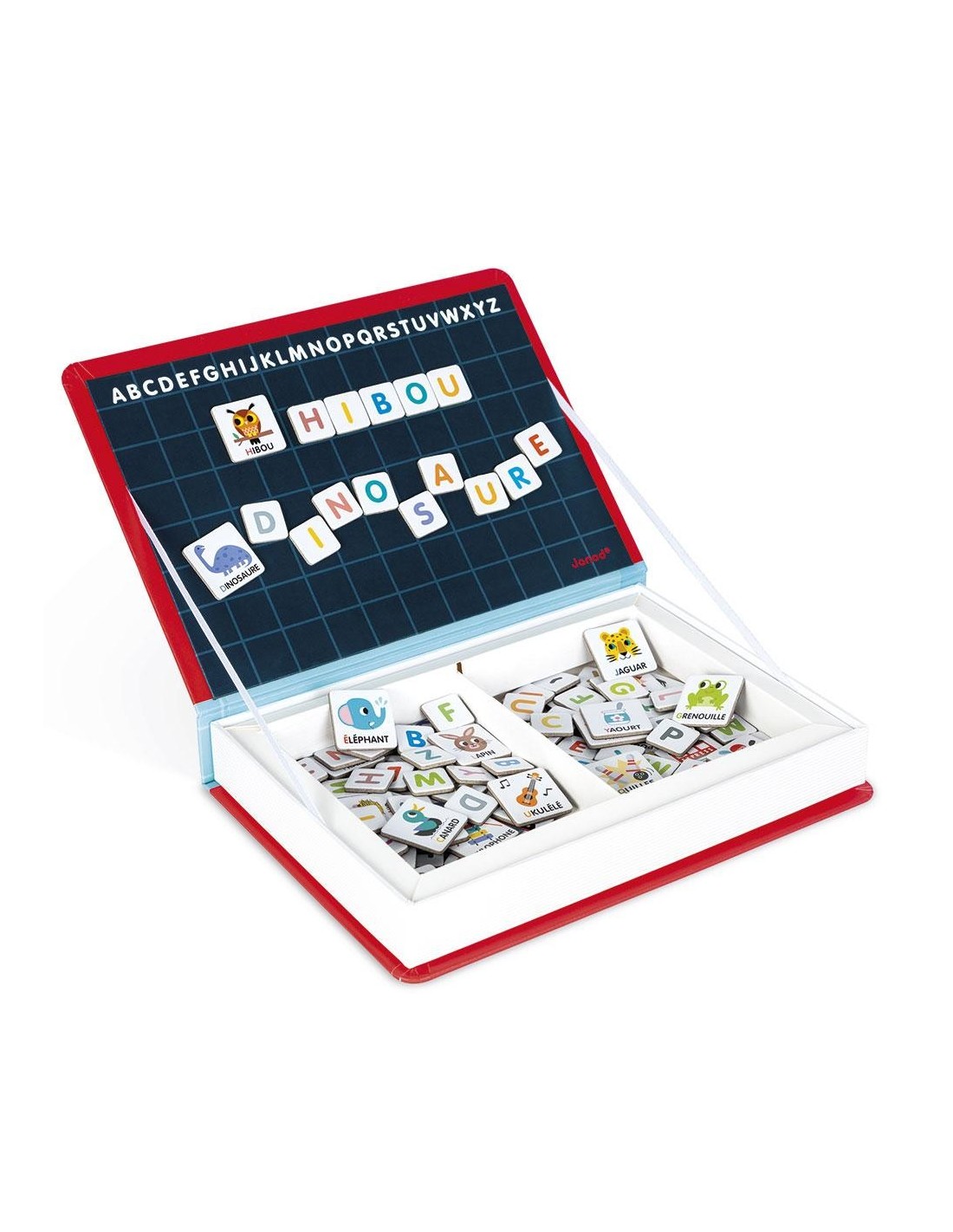 Magneti' Books es un concepto innovador y original, con el que los más pequeños y pequeñas podrán aprender importantes conceptos desde un punto de vista práctico. Sobre el escenario imantado podrán colocar las piezas magnéticas, ordenando las letras para formar palabras, dejándose orientar por las fichas ilustradas o colocando letras a su antojo para crear palabras conocidas o inventadas. ¡Todo ello en francés!