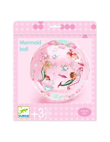 Bonita pelota inflable de 35 cm de diámetro, ligera y fácil de transportar, decorada con temática de sirenas. El compañero ideal para los juegos al aire libre o para divertirse en el agua. Una vez desinflada, es muy compacta. Fácil y ligera de transportar.