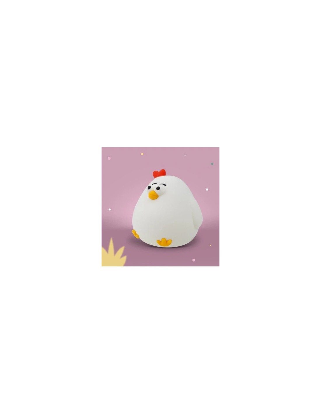 La lámpara de noche infantil en forma de gallina está hecha de silicona suave , agradable al tacto y completamente segura para los más pequeños. La falta de bordes afilados y líneas delicadas de la forma garantizan comodidad de uso, y la construcción liviana hace que la lámpara sea fácil de mover y colocar en diferentes lugares de la habitación.