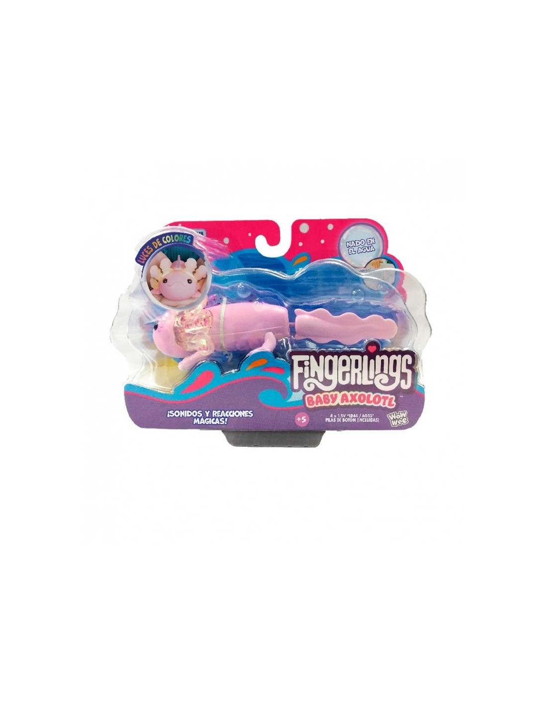 ¡Llega Fingerlings Axolotl, tu ajolote interactivo! Será tu mejor amigo. con más de 50 sonidos y reacciones mágicas. ¿Cómo estás hoy? ¡Adivina tu estado de ánimo! Sabe cuándo están en tu mano y cuándo le acaricias la cabeza, pero además... ¡nada de verdad! Detecta cuándo está en el agua, se ilumina y nada por el agua como un verdadero ajolote.