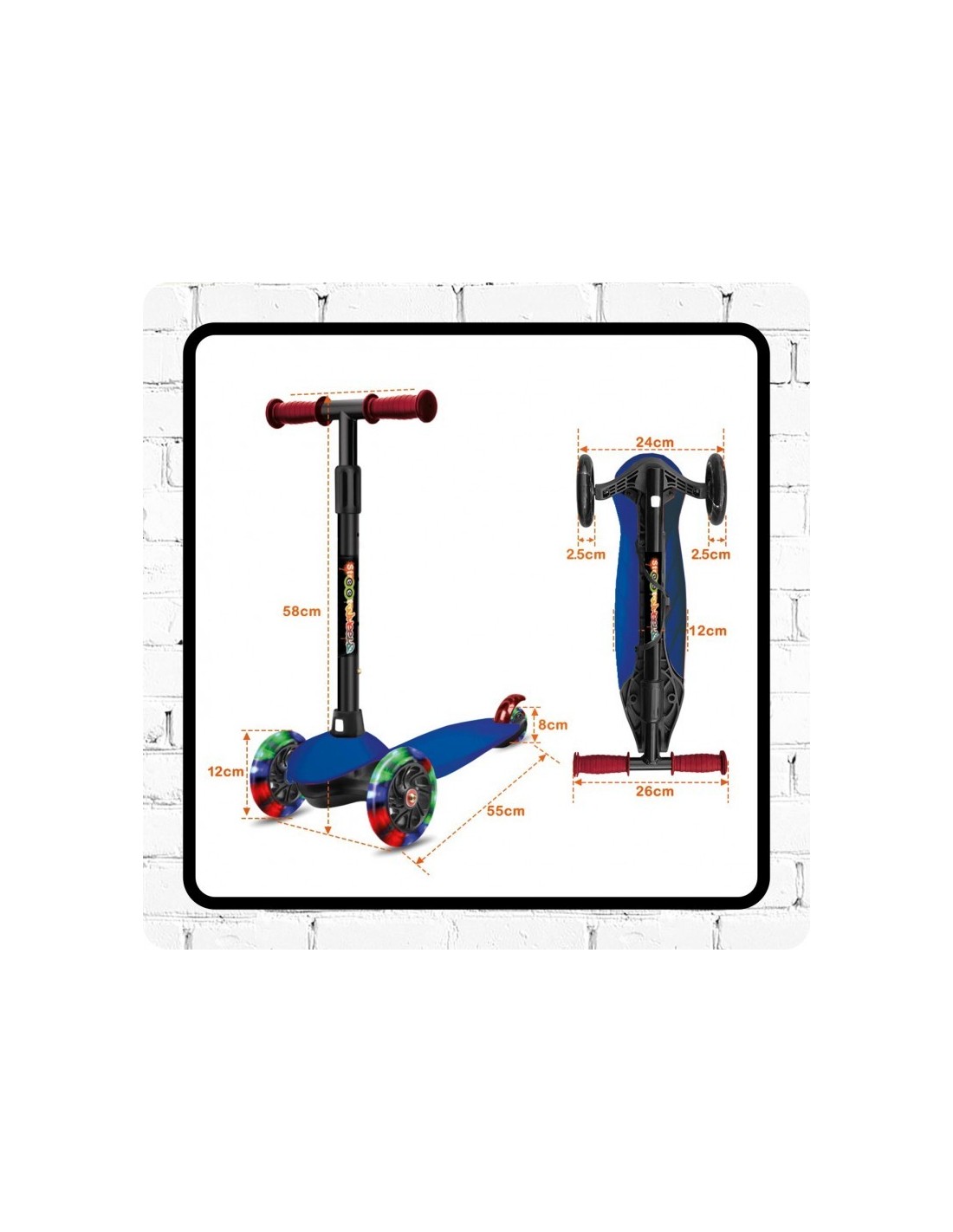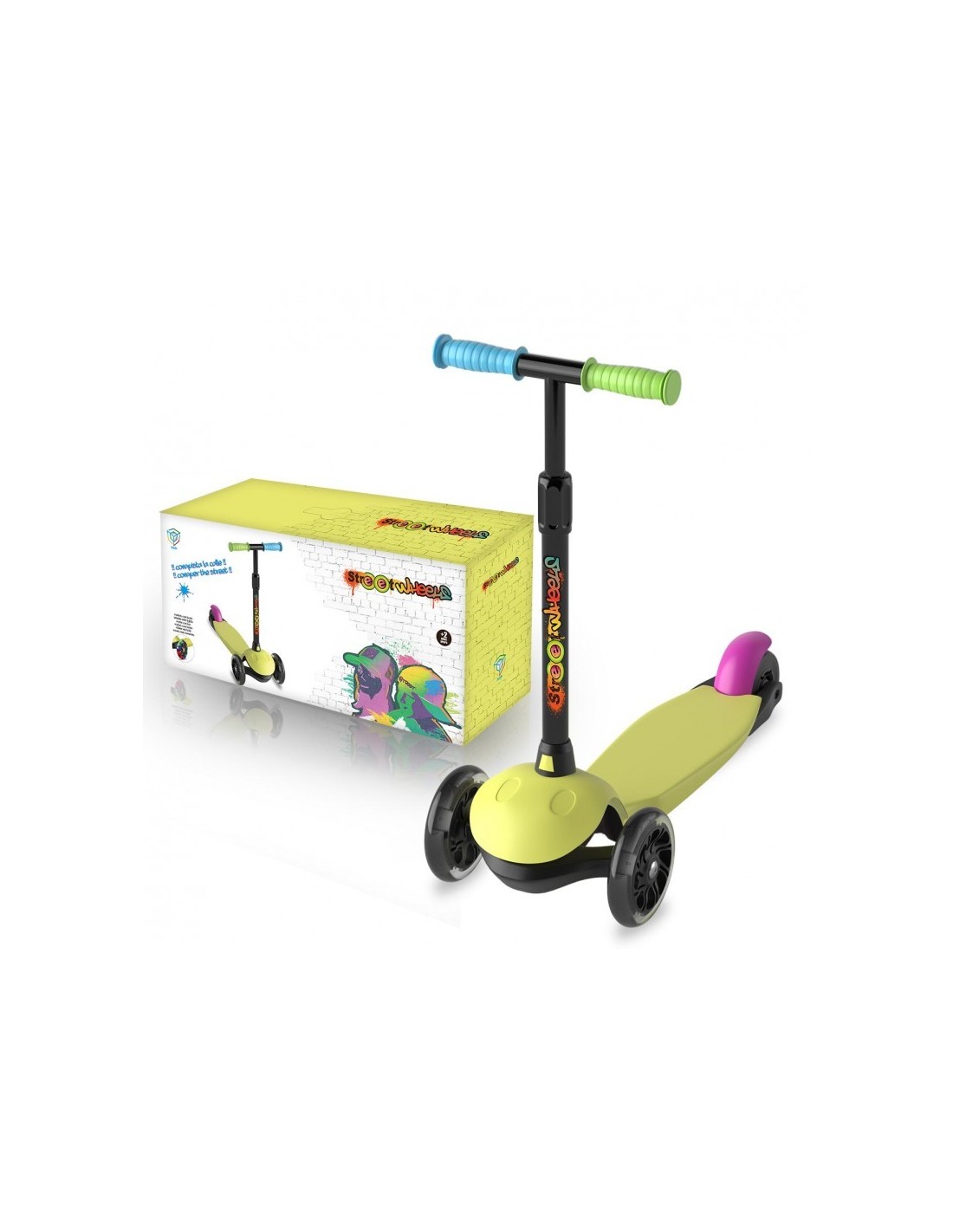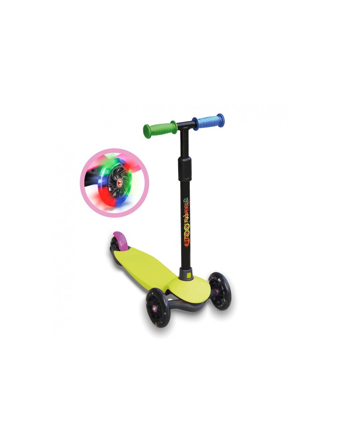 DEQUBE - PATINETE DE 3 RUEDAS NEÓN CON LUCES LED