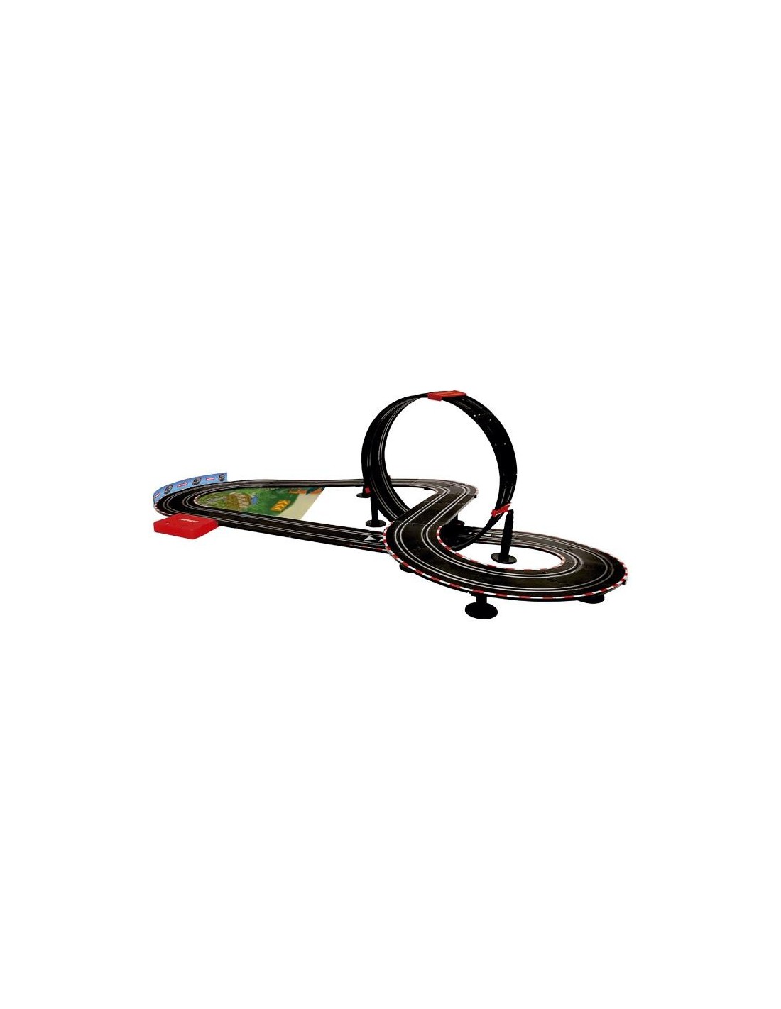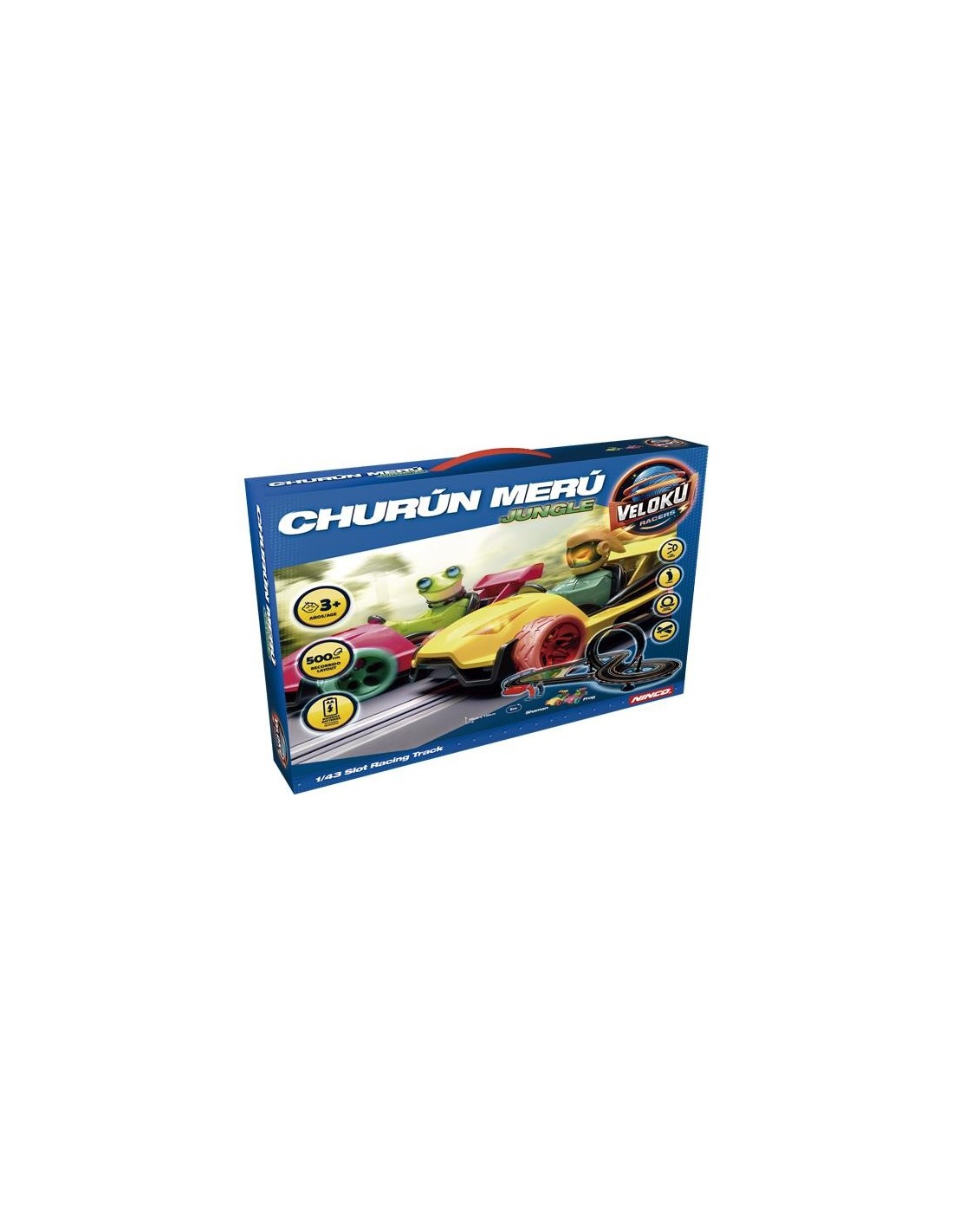 Circuito VELOKÚ RACERS escala 1/43 con 500cm de recorrido. Incluye dos divertidos vehículos con luces y los personajes FRED FROG y SHAMÁN. Funciona con pilas.