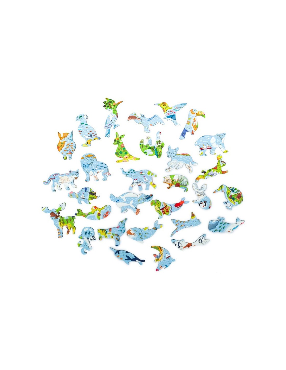 Puedes jugar y aprender con este puzzle utilizando una gran cantidad de mecánicas atractivas. Después de montarlo puedes contar todos los barcos, peces o pingüinos. Compara un panda con un oso polar. Detecta al surfista y Bigfoot. Descubre la Torre Eiffel, la Gran Muralla China o el Coliseo. Y recopila todos los detalles de formas únicas como animales, peces y pájaros.