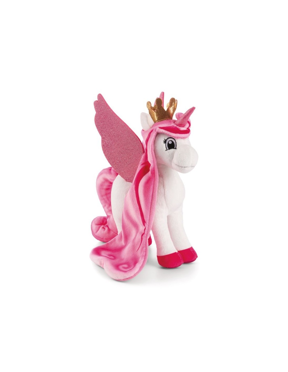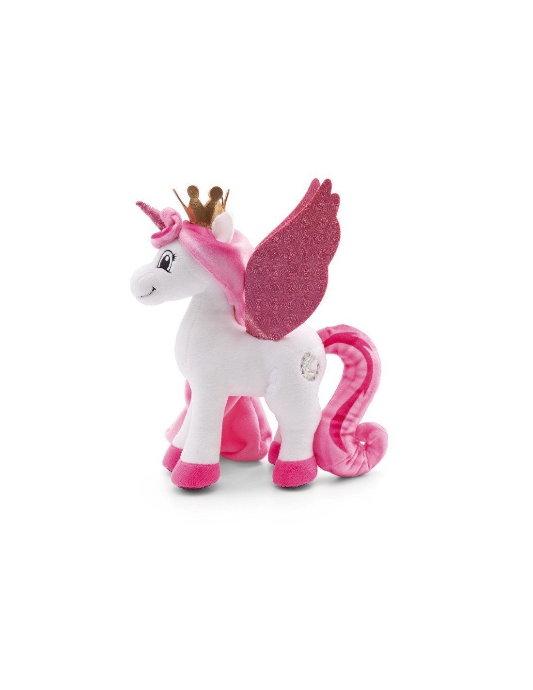 La unicornio Tamani, de Lissy PONY, es una adorable princesa unicornio con corona dorada y mágicas alas de purpurina. Su suave peluche de pie, Tamani, está hecho de la suave felpa NICI y emociona a las niñas con su encantador look en blanco y rosa. Su extravagante melena en diferentes tonos de rosa, las alas XXL de unicornio y el cuerno rosa brillante, junto con su encantadora expresión facial, deleitarán a las pequeñas fans de los unicornios y de Lissy PONY. Un peluche excepcionalmente hermoso para adorar y coleccionar, que además estimula la imaginación y permite recrear las emocionantes aventuras de los Lissy PONY.