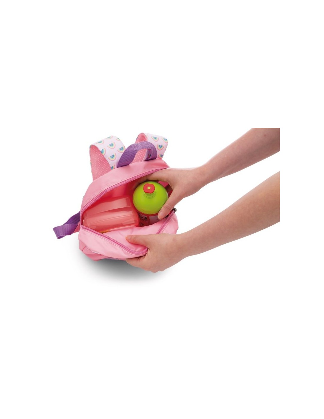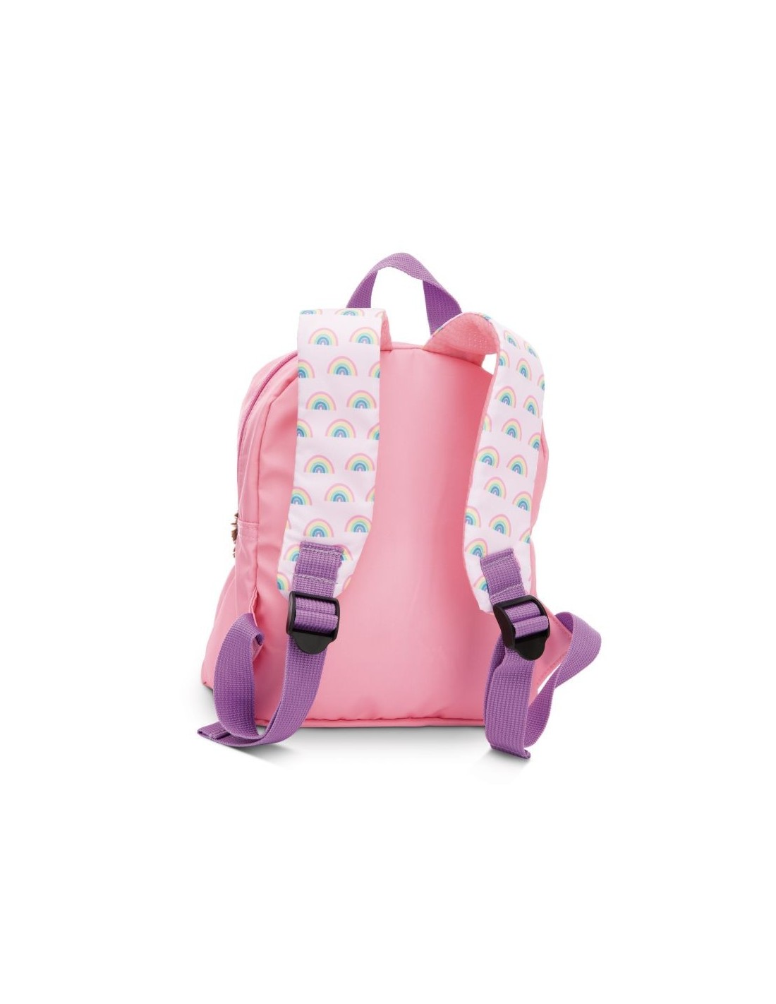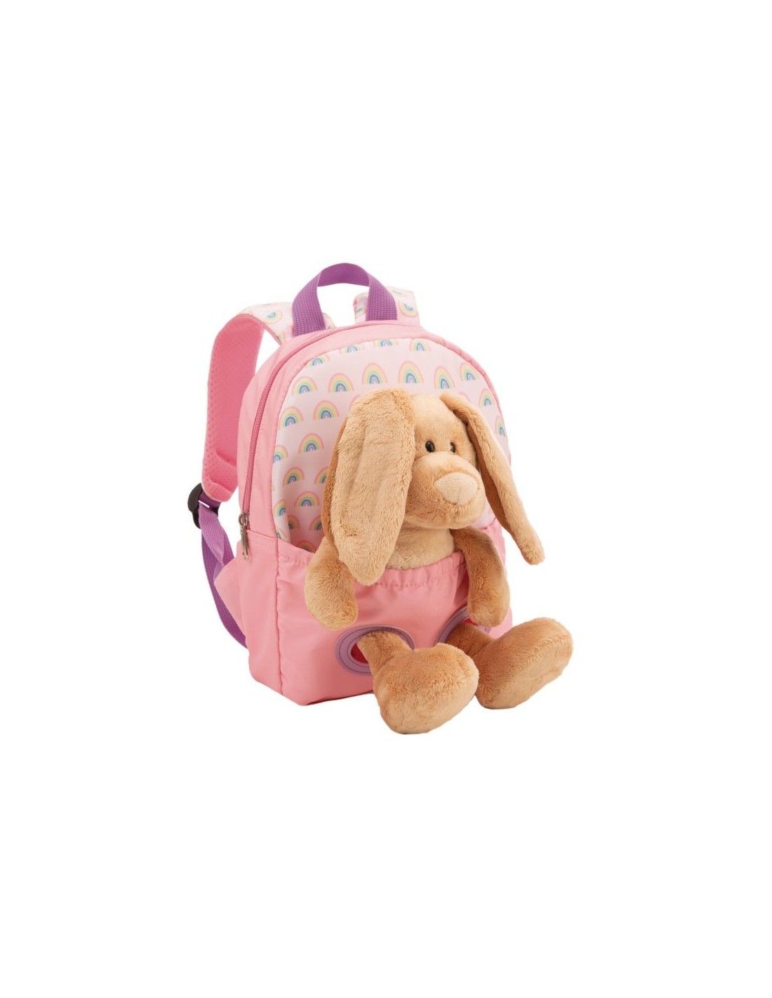 Quién quiere salir de casa sin su peluche favorito? La mochila NICI, con un diseño de arcoíris rosa, combina la magia de los abrazos con la funcionalidad de una espaciosa mochila infantil. A partir de ahora, podrás llevar a todas partes un adorable conejito marrón claro de peluche NICI, suave y esponjoso, con orejas largas y flexibles y adorables ojos de botón, sin ocupar espacio para la botella de agua. Un bolsillo en el asiento con banda elástica garantiza la sujeción perfecta y permite que el conejito observe el mundo desde la espalda del niño. El peluche de 25 cm se puede extraer fácilmente para acurrucarlo, jugar y darle cariño. Las correas de hombro acolchadas y ajustables y el panel trasero suave y agradable de la probada calidad NICI garantizan una excelente comodidad de transporte. La mochila, con su etiqueta para el nombre integrada, es un regalo fantástico y el compañero ideal para pequeños aventureros, exploradores y mochileros.