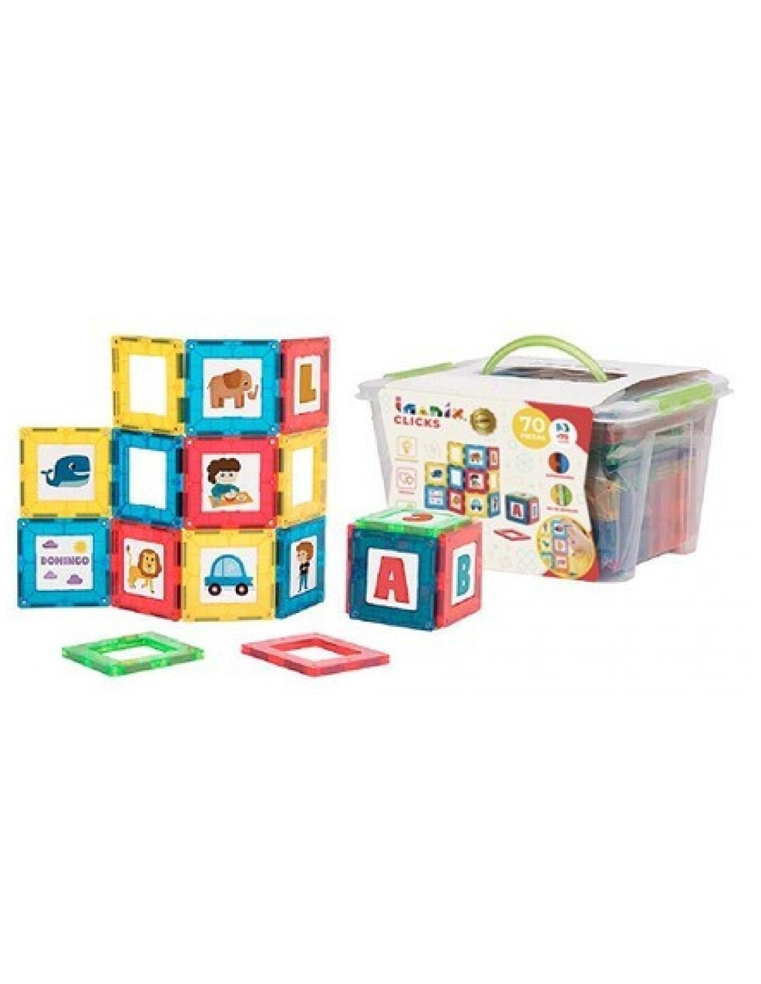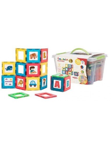 Este modelo Imanix Clicks es un complemento a las creaciones y construcciones con Imanix, que ayudará a incorporar, en un ambiente lúdico, las primeras aproximaciones al reconocimiento de figuras y letras.