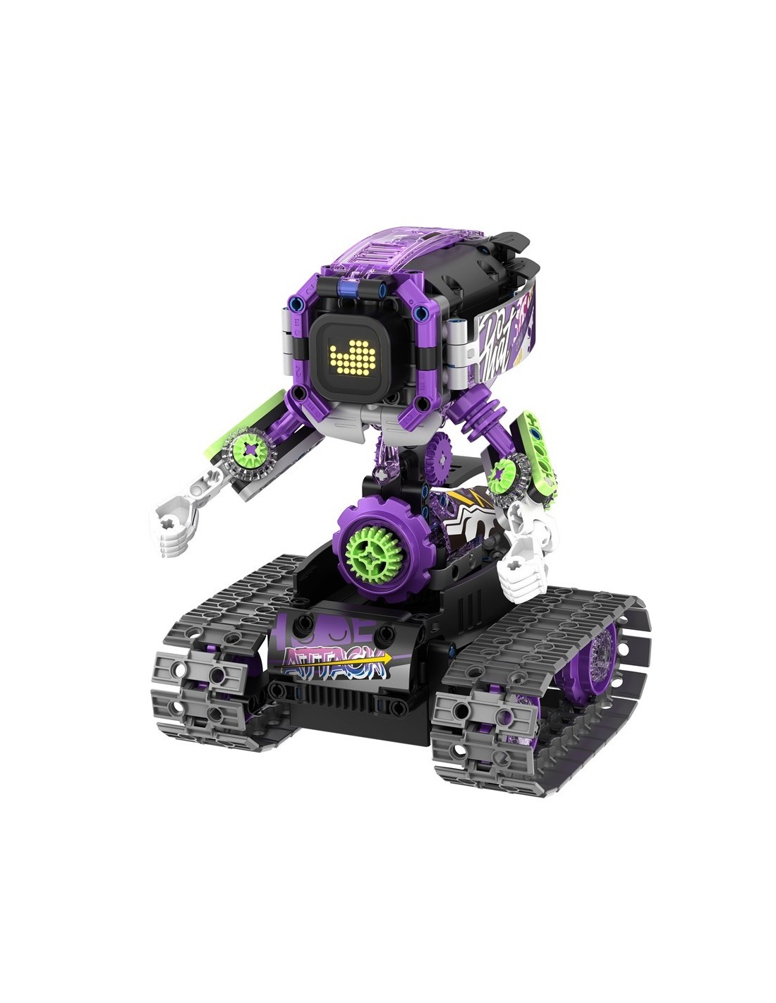 Este Robot Lila con paneles 3 en 1 está diseñado para niños, jóvenes y adultos que disfrutan de la construcción y el aprendizaje interactivo.