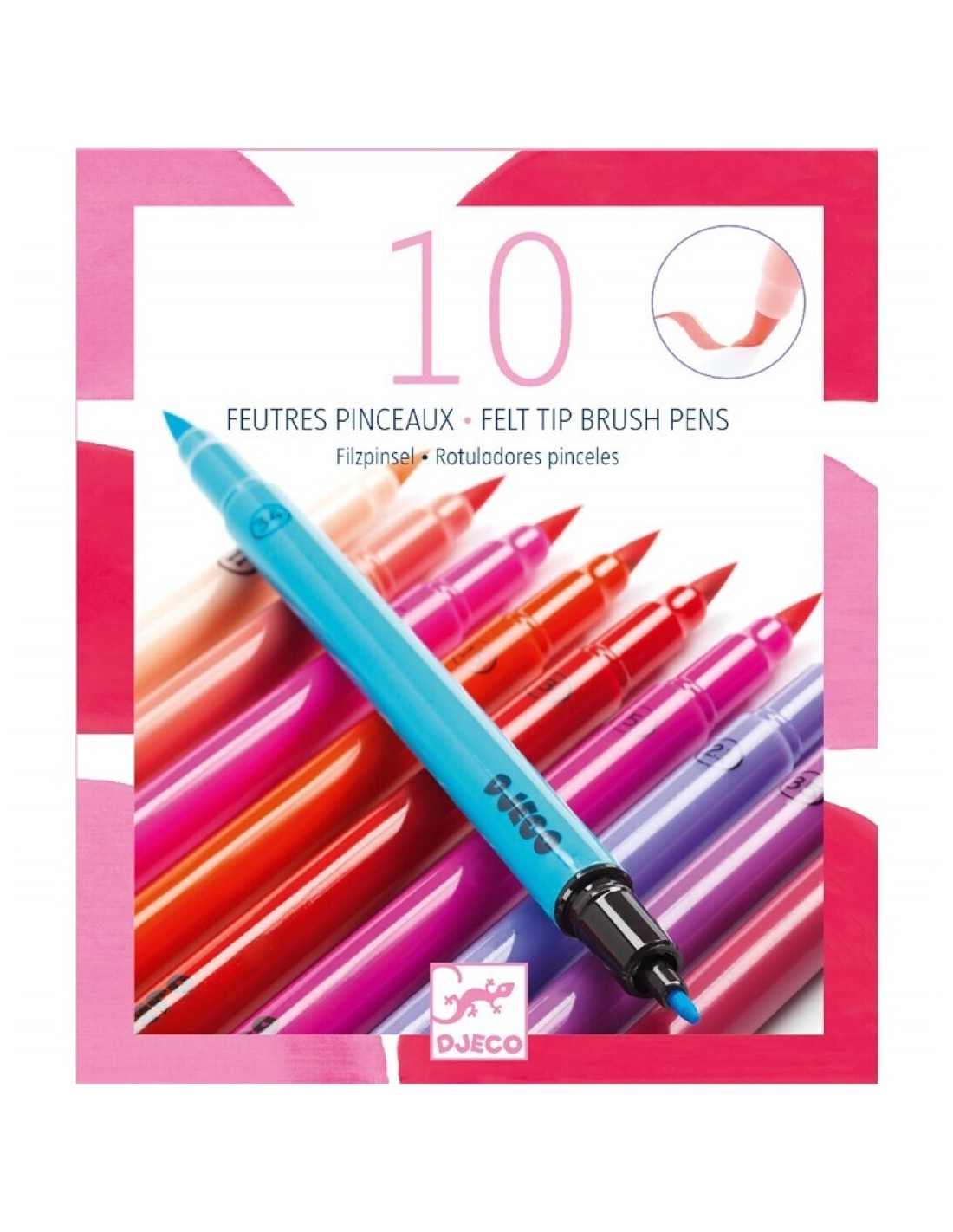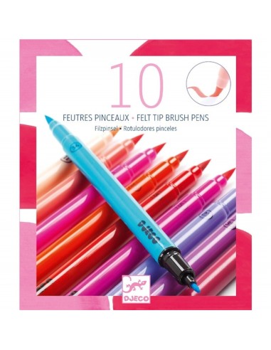 Contenido: 10 rotuladores de doble punta (fina + pincel): burdeos, ciruela, rojo, bermellón, rosa oscuro, rosa claro, rosa palo, carne, azul claro y lila.