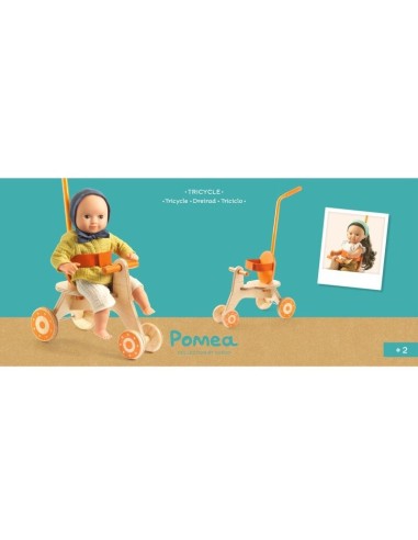 DJECO - POMEA TRICICLO DE MADERA PARA MUÑECAS