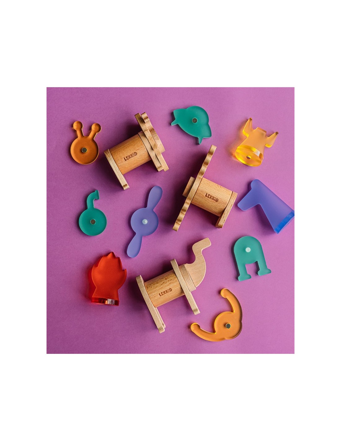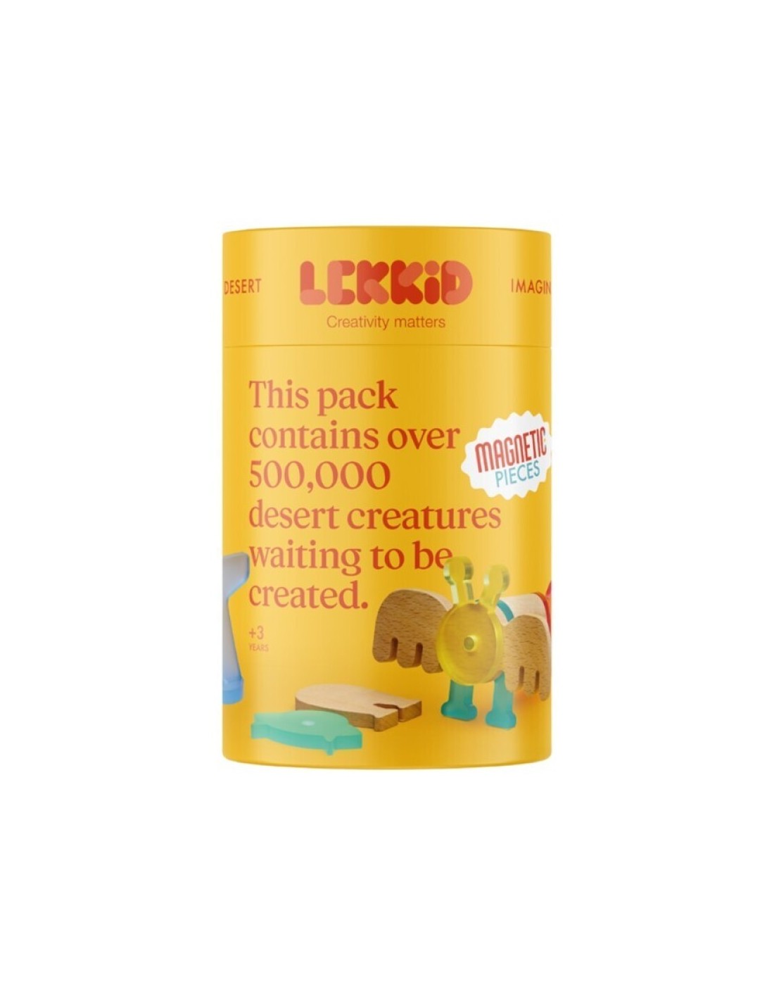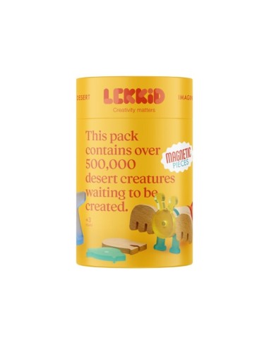 El Juego de construcción Imaginary Fauna Desert es un juego de construcción que consta de 22 piezas, contextualizadas y descontextualizadas, de materiales diferentes (madera de haya y metacrilato) y que se conectan entre sí mediante imanes para crear diversas figuras y formas. Es un juego abierto, en el que no hay una única solución y todas las soluciones son válidas, por lo que el niño puede desarrollar diferentes habilidades creativas, experimentando, transformando y combinando materiales, y potenciando así el pensamiento flexible.