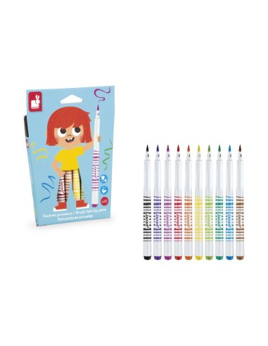 ¡Convierte cada dibujo en una obra maestra con estos rotuladores pinceles! Este set de 10 rotuladores pinceles ofrece una paleta de colores vivos que darán vida a todos tus dibujos. La punta blanda dará la impresión de utilizar mucho más que un simple rotulador para los dibujos y bocetos de los pequeños artistas. Además, la tinta fácilmente lavable permite una limpieza sin problemas. Producto para niños a partir de 3 años.