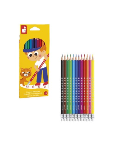 ¡Regale a su hijo lápices de colores borrables para hacer un sinfín de creaciones! Este set de 12 lápices ofrece una paleta de colores brillantes y una excelente cobertura para hacer dibujos vibrantes. Estos lápices tienen una punta de borrador para corregir si te has pasado, o para borrar los pequeños errores fácilmente. Su forma triangular garantiza un agarre cómodo y ergonómico. Una gran elección para estimular la creatividad de los niños. Producto para niños a partir de 3 años.