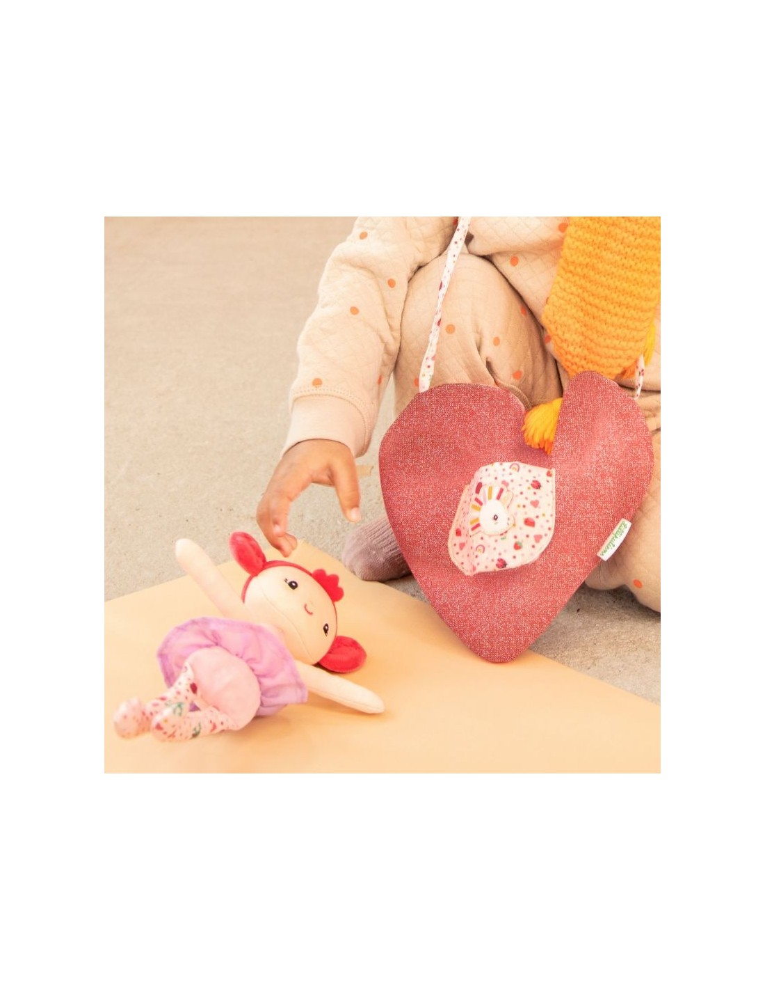 Este bolso en forma de corazón cautiva por su forma única y sus colores vibrantes. Un pequeño bolsillo en la parte delantera acoge a una pequeña muñeca lista para ser mimada por su propietario. Fomenta el desarrollo de la imaginación y la creatividad en el niño. Juntos, el niño y su muñeca pueden vivir innumerables aventuras, inventando historias fantásticas y explorando mundos imaginarios.