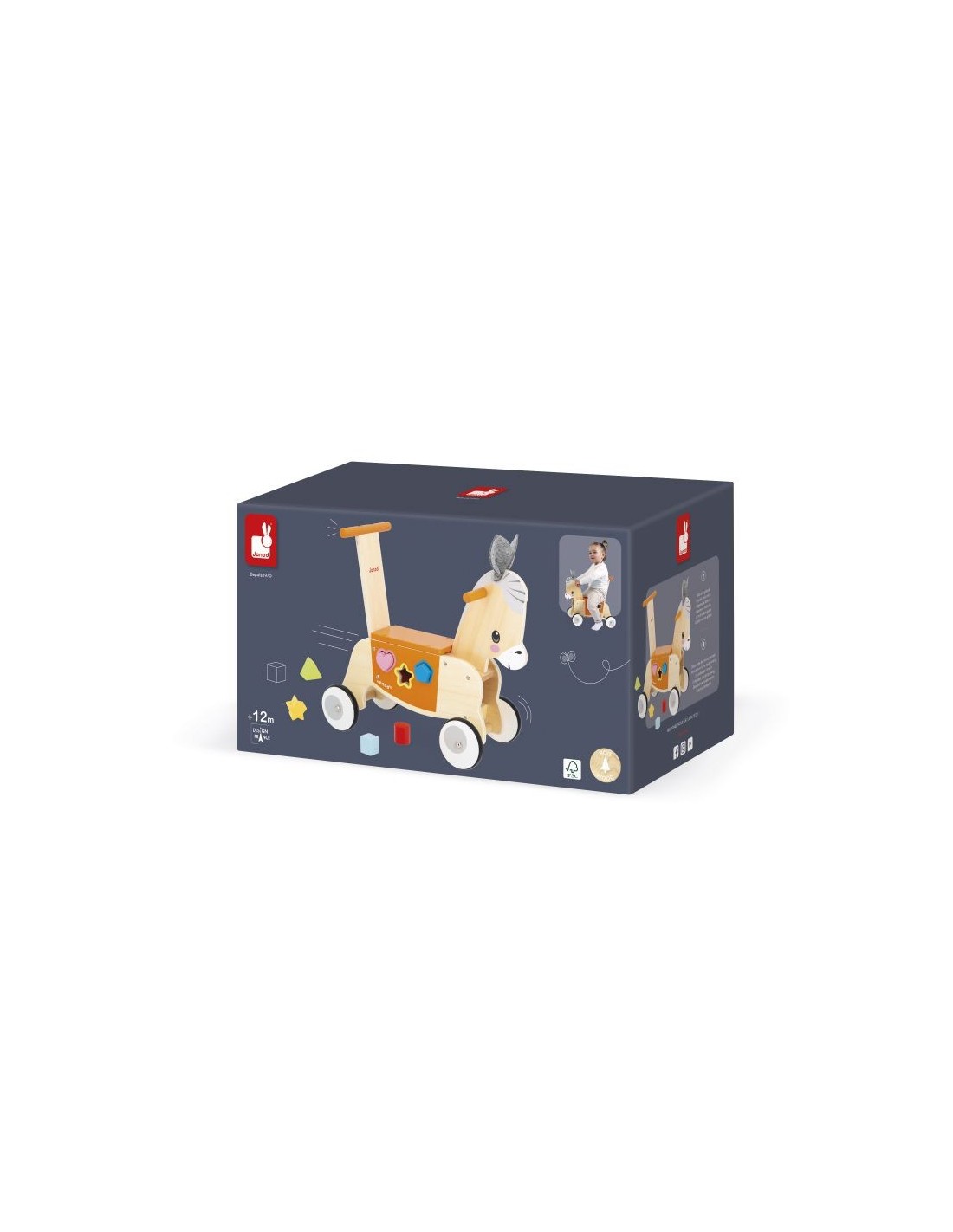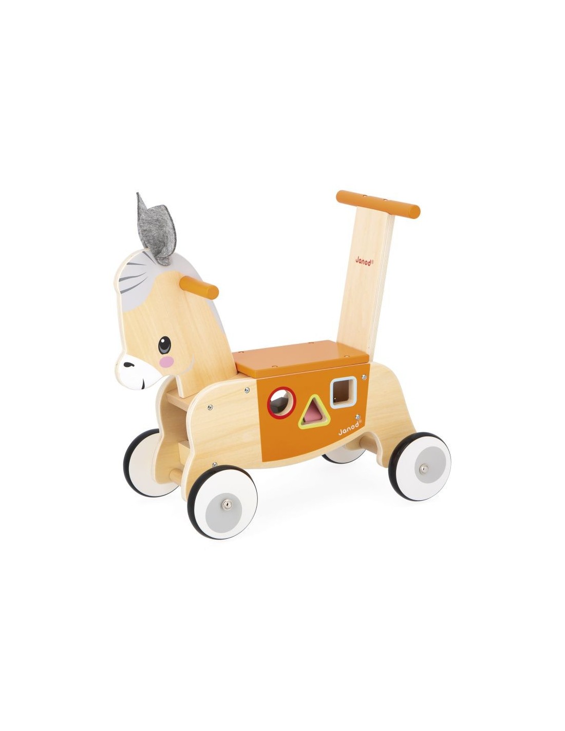 ¿Quién quiere dar un pequeño paseo en burro? Este bonito correpasillos se convertirá en su compañero ideal, para subirse encima o empujarlo, y ayudará a su hijo a sostenerse de pie permitiéndole descubrir el mundo que le rodea. Su hijo también podrá probar su destreza con la caja de formas que lleva en el cuerpo el correpasillos. Por último, con sus 4 ruedas de goma silenciosas, este correpasillos no deja marcas en el suelo y garantiza una buena estabilidad con total seguridad. Permite al niño desarrollar su motricidad fina y aprender a andar. Juguete de madera. Para niños entre 12 y 36 meses.