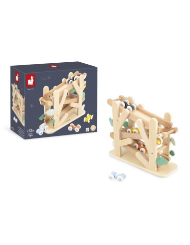 ¿Listo para la carrera del siglo? ¡¡Ya están las hormigas alineadas en la línea de salida!! Circuito de madera natural que da protagonismo a la carrera de 4 intrépidas hormigas. ¡La llegada se anuncia con el sonido de la campana! Su hijo no parará de poner una y otra vez su hormiga favorita en lo alto del circuito... ¡y de ver cómo baja! De esta forma, desarrollará su motricidad fina y su comprensión de la relación causa-efecto. Juguete de estimulación de madera para niños a partir de 12 meses.