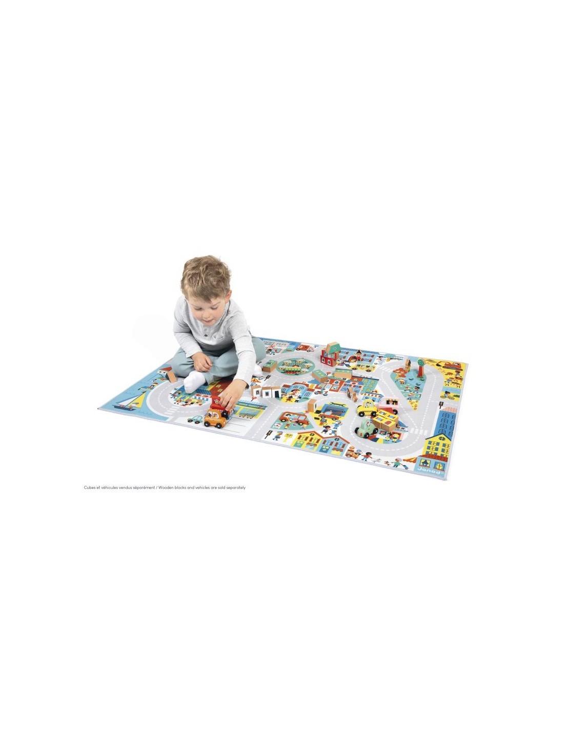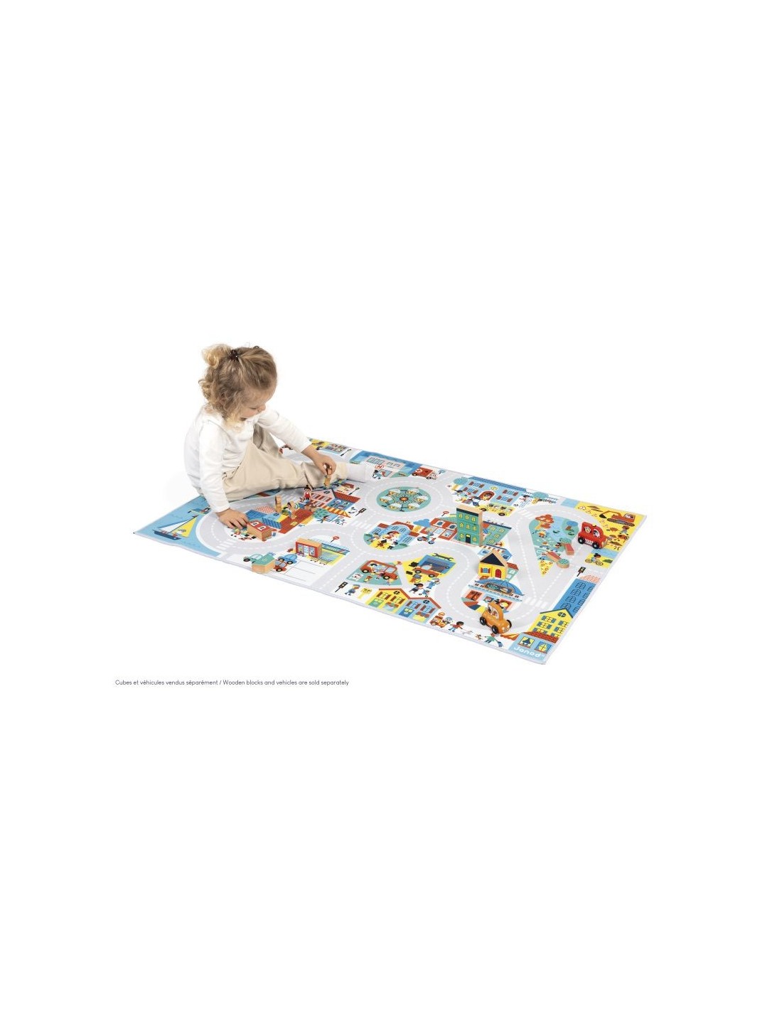 ¡Bienvenidos a esta colorida y animada ciudad donde cada esquina esconde una sorpresa! Esta alfombra de juego que representa una ciudad tiene una calle ancha y larga para descubrir cada barrio imaginando historias sin fin. Además de estimular la imaginación, sirve para jugar a encontrar cosas y ayuda a ampliar el vocabulario. ¿Encuentras al cartero? Con el tema de la ciudad, enseña al niño las profesiones, los colores y las emociones. Un extra: ¡la alfombra es antideslizante! Así el pequeño puede jugar fácilmente y con total seguridad con sus cochecitos. Juguete de imitación para niños a partir de 2 años. Puedes completar tu alfombra con una bonita colección de vehículos que encontrarás en la gama Janod. ¡Y también puedes combinarla con las demás alfombras de la colección para crear un espacio de juego gigantesco!