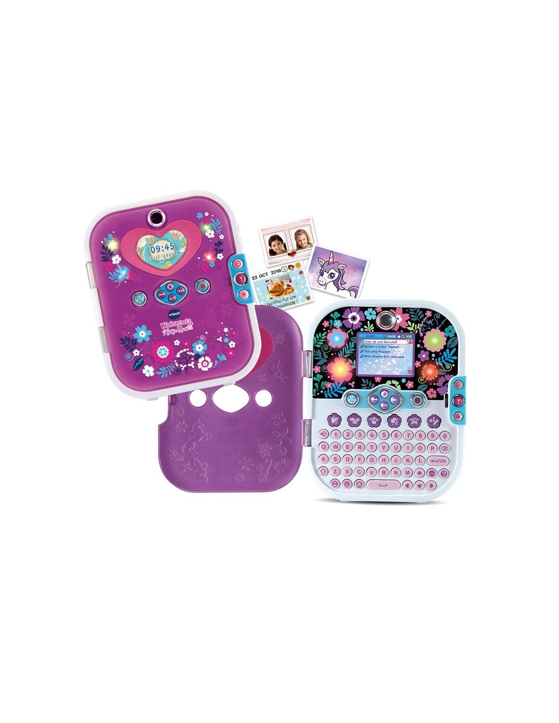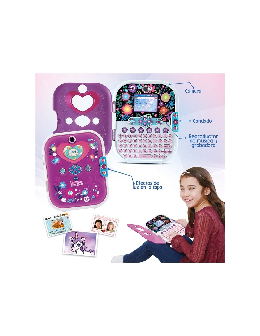 Hazte con este impresionante y precioso KidiSecrets de color rosa, con diseño de flores, portada mágica que se abre con tu cara y muchas más sorpresas. Añade canciones para después escucharlas, juega, edita fotos, disfruta de un espectáculo de luces y aprende al ritmo de este genial juguete interactivo.