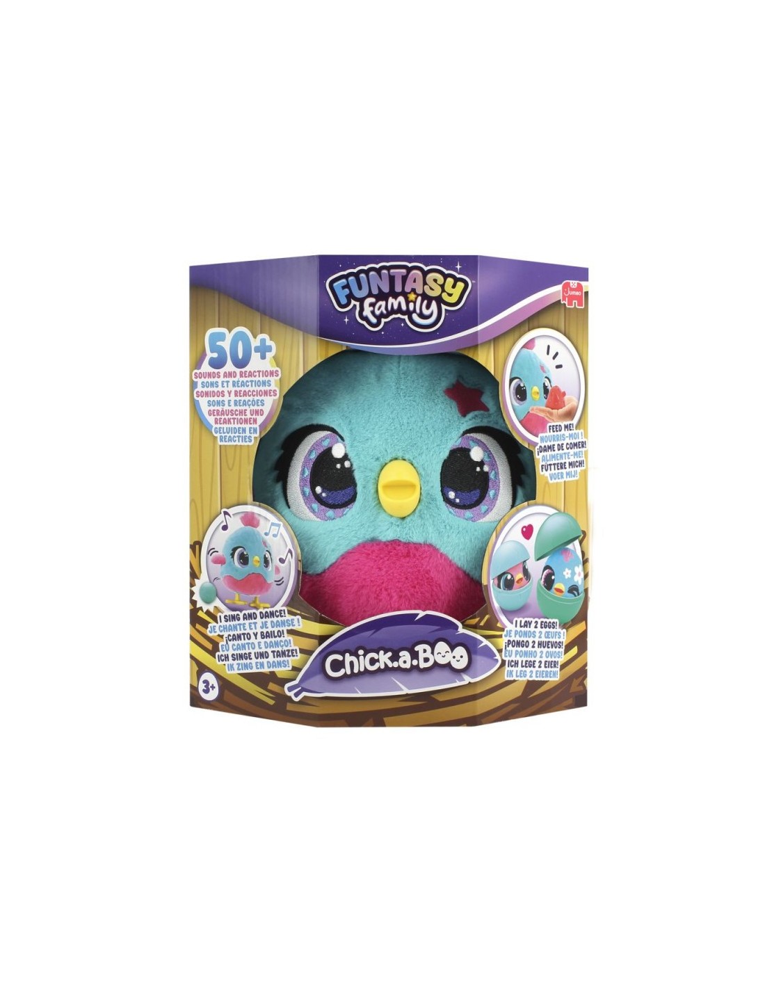 Conoce a Chick-A-Boo Jenny, la mamá gallina de Funtasy Family que incuba los huevos. Los niños pueden alimentar a Jenny con su accesorio para comer, animándola a cantar, bailar y poner huevos llenos de pollitos sorpresa. A medida que coman e incuben los huevos, descubrirán adorables pollitos, ¡lo que aumenta el juego interactivo! Hazle cosquillas bajo el ala para oírla reír a carcajadas. Con más de 50 sonidos y reacciones, Jenny fomenta el juego y el desarrollo emocional, garantizando horas de entretenimiento. Este set incluye 1 gallina, 1 accesorio para comer, 2 huevos y 2 pollitos.