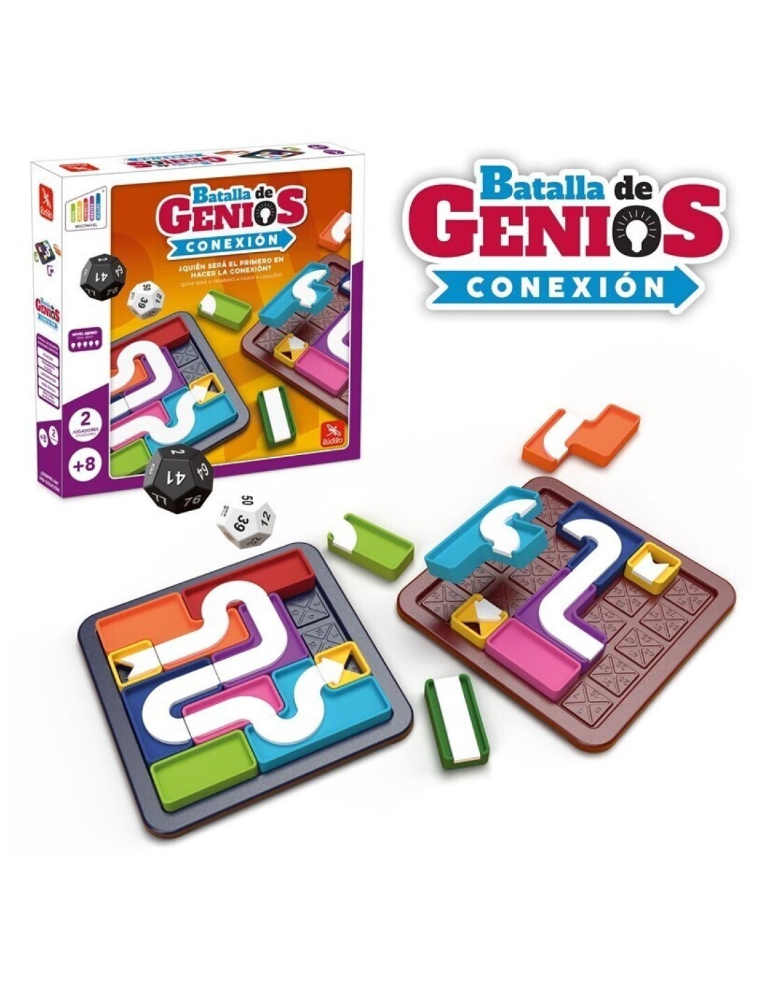 Batalla de Genios Conexión es un juego de mesa en el que, a modo de duelo, tendréis que resolver infinitos desafías colocando las piezas en el tablero. ¿Quién será el primero en encontrar el camino correcto?