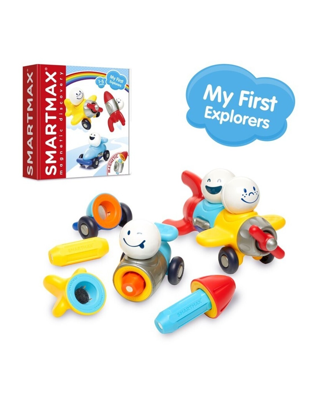 ¡Adéntrate en un mundo de imaginación con My First Explorers! Este set magnético del universo SmartMax permite a los más pequeños construir y combinar vehículos únicos como un coche, un avión o un cohete, creando diseños que desafían los límites de su creatividad.