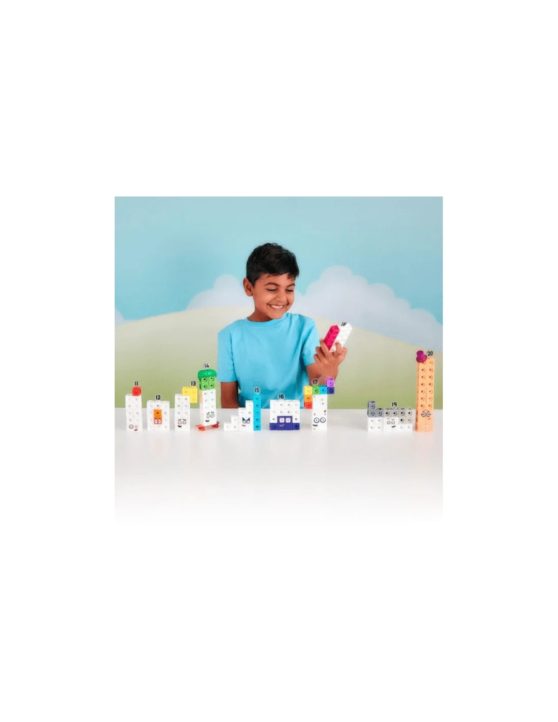 Te presentamos a los Numberblocks, las estrellas de la galardonada serie de TV. Estos divertidos amigos cobran vida con este set de actividades con cubos MathLink Numberblocks del 11 al 20 de Learning Resources. Este set cuenta con todos los cubos de edición especial MathLink Numberblocks necesarios para que los niños construyan a los Numberblocks del Once a Veinte de todas las maneras que muestran los episodios. Además, incluye tres accesorios exclusivos: el casco y el monopatín de Catorce y el sombrero de copa de Veinte. Los niños pueden aprender más cosas sobre la magia que esconde cada número gracias a las coloridas tarjetas de escribir y borrar que incluye el set y completar 30 divertidas actividades de matemáticas que están relacionadas con episodios concretos. Este set es un recurso muy divertido para que los niños desarrollen sentido numérico mientras aprenden a contar, a sumar y a restar, y mientras disfrutan de una introducción a la multiplicación y la división básicas. Este set es ideal para usarlo en actividades de matemáticas tempranas, tanto en el aula como en casa