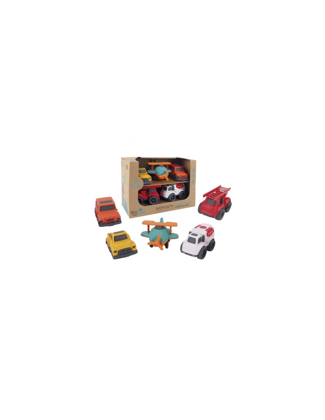 Pack vehículos con gran conciencia ecológica! Están fabricados con paja de trigo, un material natural, sostenible y seguro para los más pequeños. Su diseño suave y redondeado los hace ideales para manos pequeñas, mientras que sus colores vibrantes despiertan la imaginación. Ligeros, resistentes y respetuosos con el planeta: una forma divertida y consciente de jugar desde la infancia. Contiene dos camiones, dos vehículos y una avioneta.