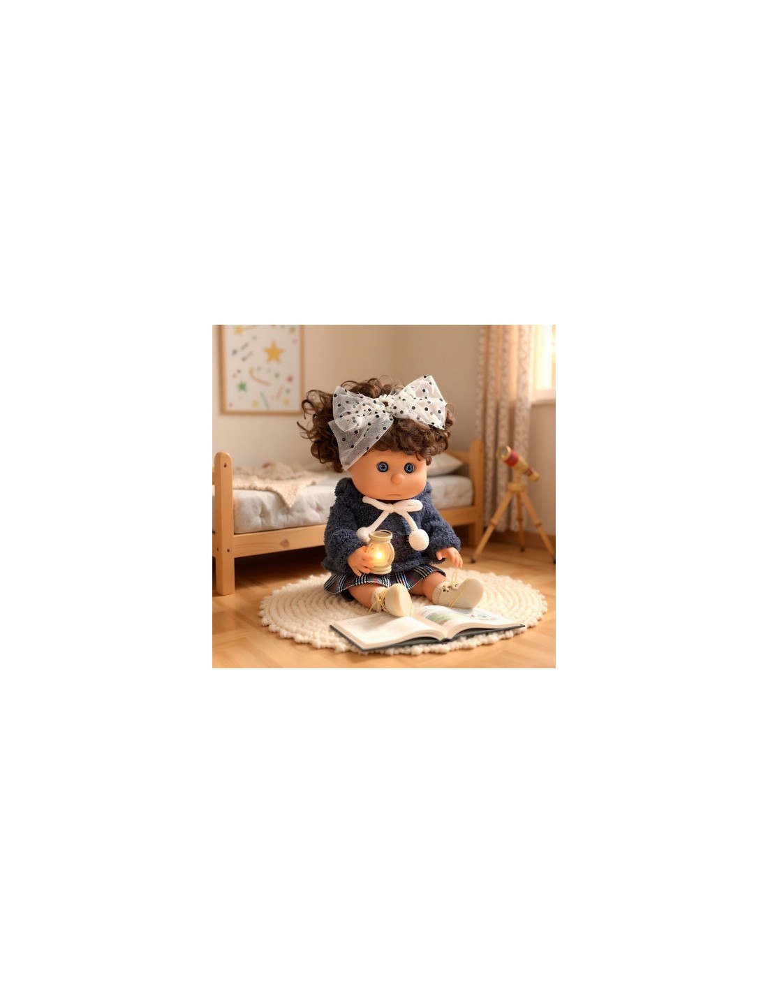 Muñeca Pepona de 40 cm con una cara encantadora y característica, resaltada por sus mofletes gorditos que le dan un aire dulce y simpático.