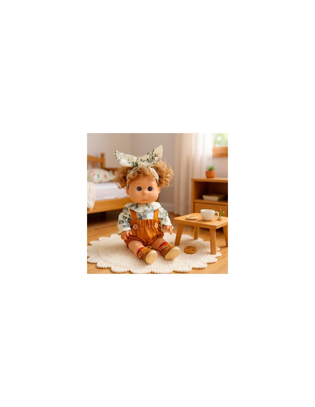 EMMA es la más dulce y cariñosa. Le encanta cuidar de los demás y preparar meriendas imaginarias para sus amigas. Su ropa suave y sus botones de madera hablan de ternura y calidez.